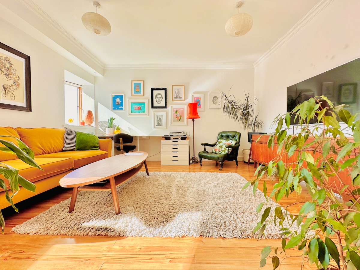 Lovely big, bright, clean, stylish 2 double bed, 2 bathroom (1 with bath, 1 with shower) 1970's flat in Dublin's premier area. Nice sea/garden view, sth facing balcony, intercom, lovely trees around. Large gardens to sit out. Free parking, fully equipped, door to patio from living rm. Open fire. 2nd flr, v safe, no lift. By the sea. Strong WIFI, Netflicks, TV. Not a sleek mod hotel-like flat tho. Full of charachter. Stylish. Min july/aug stay is 6 days.