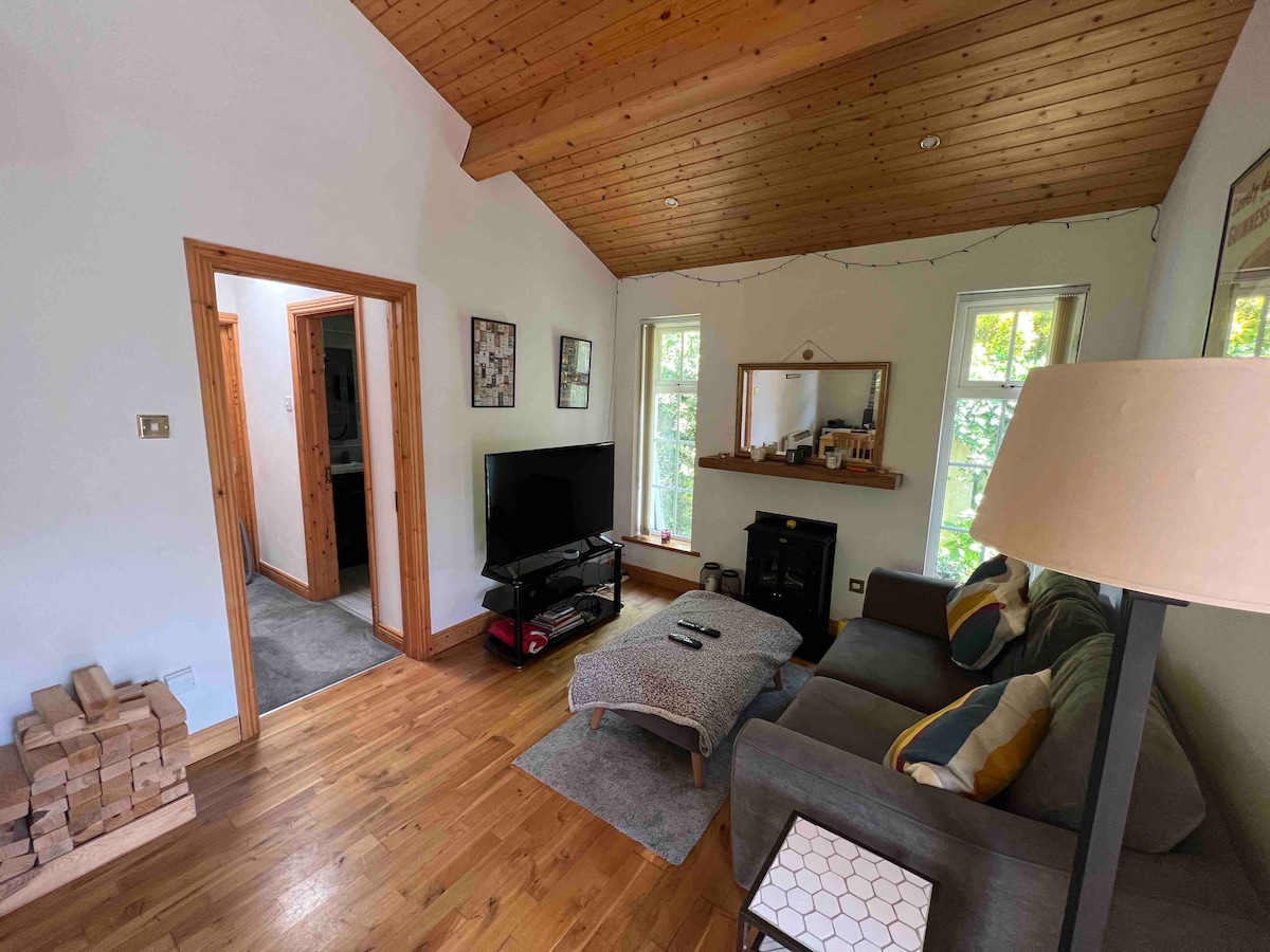 Escape to our charming one-bedroom apartment in Tinode Farmyard near the Wicklow Mountains. Designed by architect Michael Kelly, it offers cozy evenings by the wood-burning stove and exploration of June Blake's garden. Perfect for couples or solo traveller’s seeking tranquility and outdoor adventures, with its rustic charm and modern comfort. Enjoy the lush surroundings and idyllic atmosphere, just a short drive from scenic hiking trails.