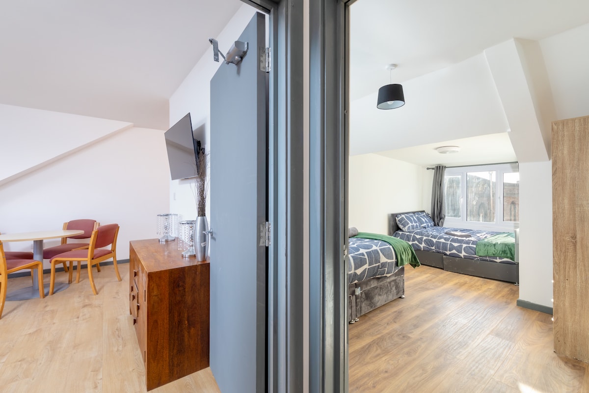 Darlington Town Centre Studio Apartment is a modernised and refurbished apartment in the heart of Darlington. Which is centralised for everything you need during your stay. Sleeping 3 guest across a spacious studio living space, with a double bunk bed and a shower bedroom. The kitchen has all appliances for your homely stay.
