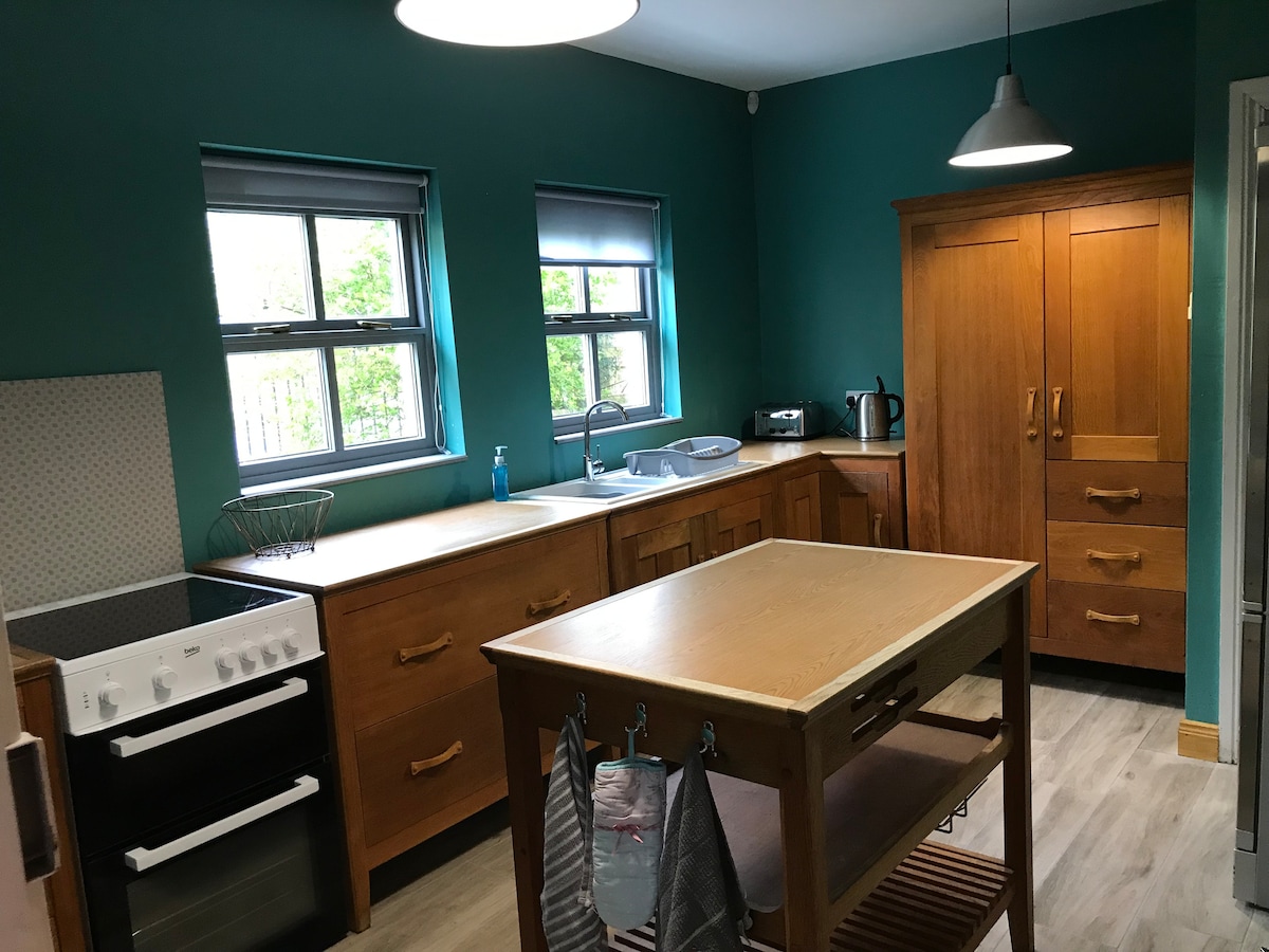 Lug Beag is a totally refurbished cottage, new to airbnb since July 2018; situated up a private, long and winding lane, in the heart of a working organic farm, at the Eastern tip of the Ox Mountains. Whether it is hill walking, cycling, surfing, angling, or just chilling, all are within easy reach of Lug Beag. Collooney village is only a 2 minute drive away, with shops, pharmacy, post office, pubs, Churches, a café, take aways, a train station, play ground and a soft play centre. Sligo Town is a 10 minute drive away, with larger shops, and award winning restaurants, cinema and the Hawks Well Theatre. Ballisodare is a neighbouring village on the Wild Atlantic Way, a 5 minute drive away. Beautiful scenic beaches such as Dunmoran Strand and Roses Point are 15 minutes away by car, and the surfing mecca Strand Hill is 20 minutes by car. Knock airport is a 40 minute drive away. The Space. Lug Beag has 4 bedrooms - 2 doubles (one is en-suite) and 2 twins, plus a large living space comprising kitchen, dining and living areas. Also a bathroom plus spacious utility room, a secure garage, and a large patio in the enclosed patio to the rear of the cottage. There is oil fired central heating, plus a wood burning stove in the living room. Our house is not visible from the cottage, but it is only a stone's throw away. Your only other neighbours are hens, duck, pigs, goats, sheep, and cattle.