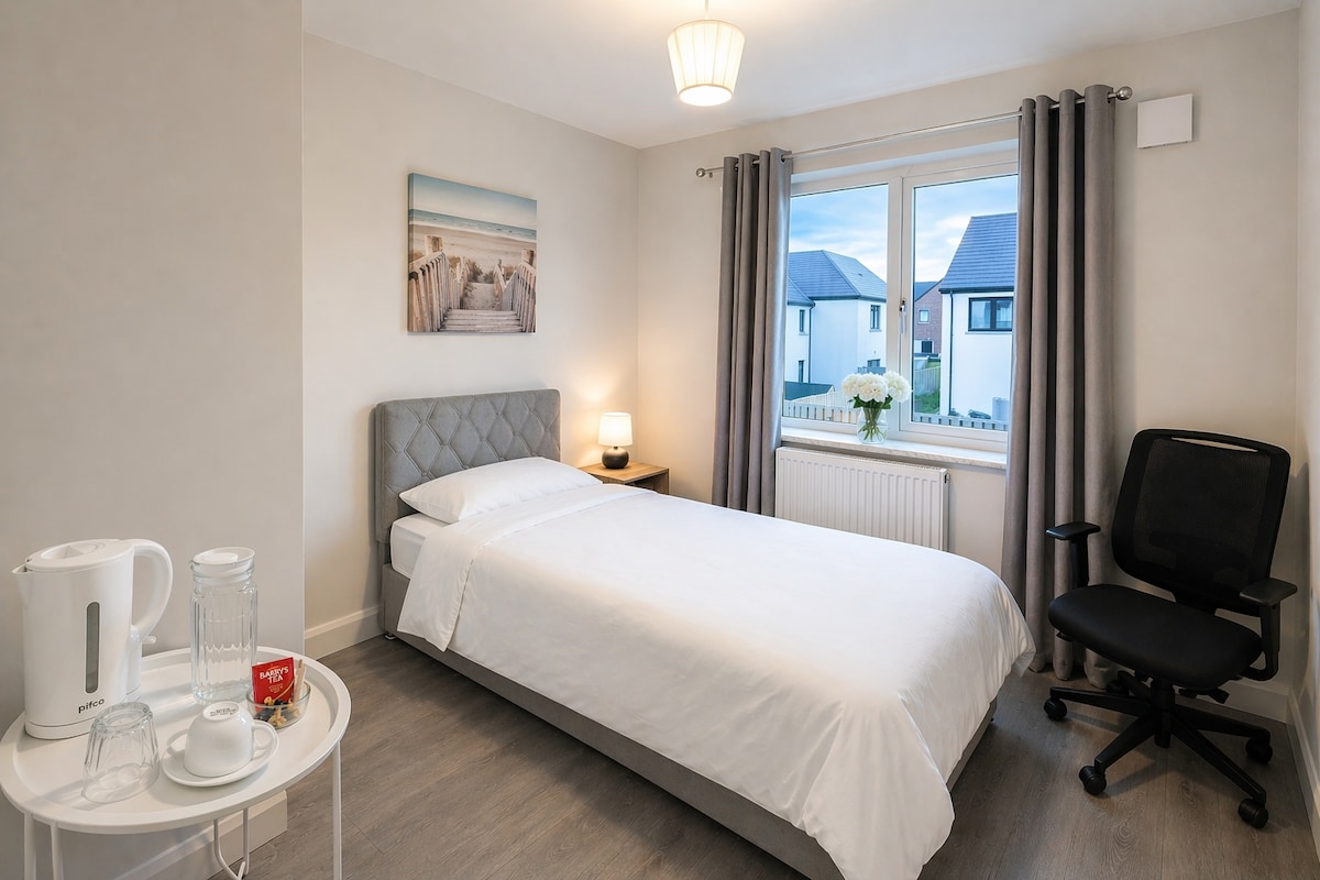 Private Double Room in a Modern Home Relax in a bright, spacious double room in a newly built home located in the quiet and desirable Ballymakenny Park, Drogheda. What you’ll love • Comfortable double bed with plenty of natural light • Smart TV for streaming • À la carte menu available for food & drinks (🍽️☕🍷) • Peaceful neighbourhood with easy access to shops and transport • Short distance to Drogheda town centre and great connectivity to Dublin Note: This property is owner occupied.