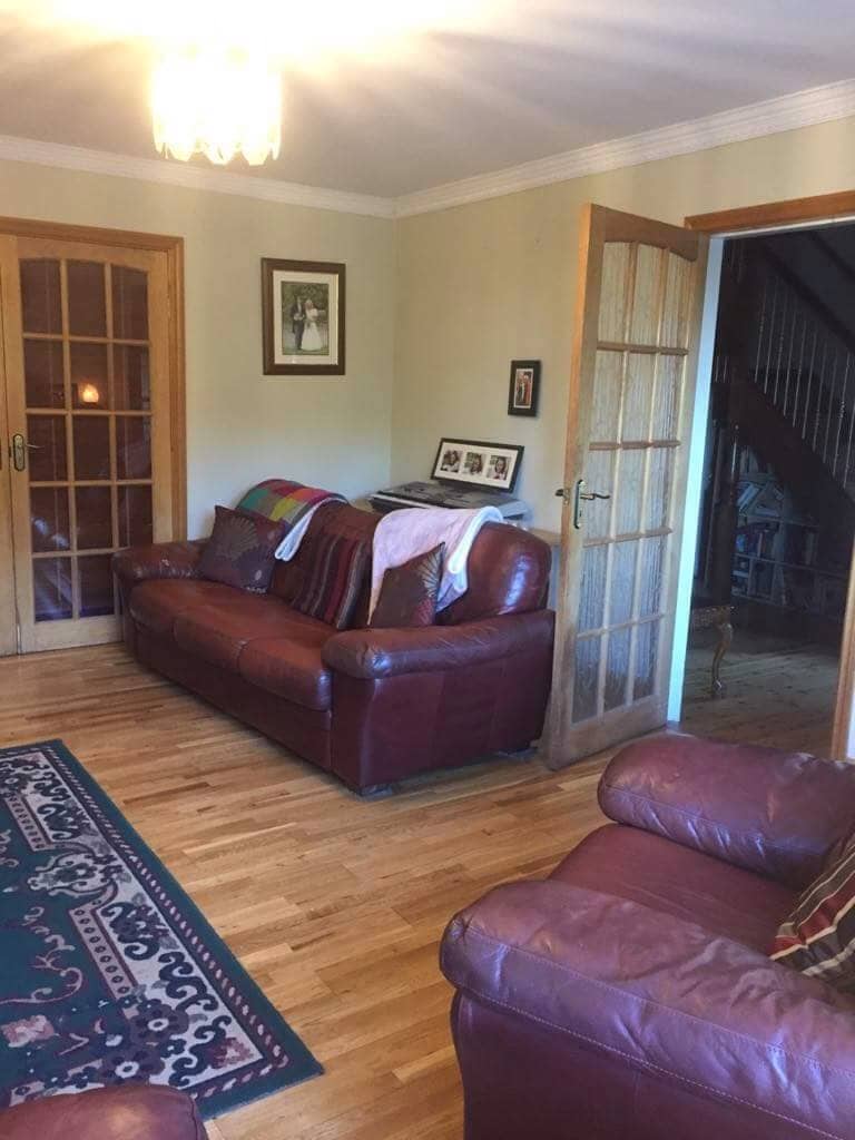 A real family feel to this warm home, surrounded by land and cattle. If you drive 30 minutes in any direction you'll land at a beach. If you drive 15 minutes in any direction you'll land in a town. It's very safe and secluded. Gorgeous view and plenty of space to let the little ones run around and play with the happy dog Basil Breakfast included: continental breakfasts, cereals and beverages. Full Irish Breakfast is an extra €10 per person.