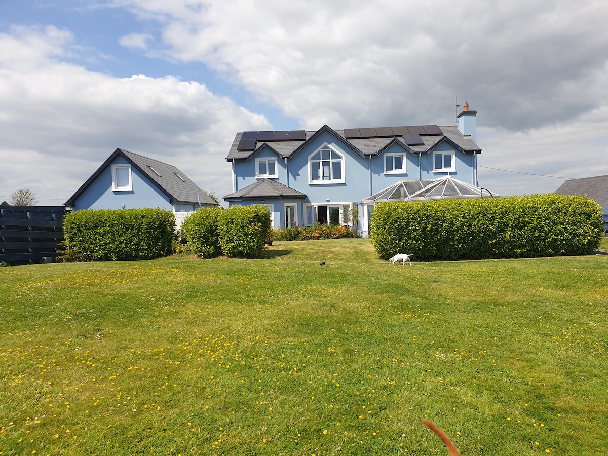 Spacious and modern home perfect for families or groups looking for comfort and convenience. The kitchen/dining is now upgraded for 2025 to air conditioning. Blackwater was voted Wexford's tidiest town in 2023 & 2024. Our home is secluded private 3/4 acre elevated site with sea views, ample parking and not overlooked. Ballyconnigar beach 4 min drive(Curracloe 10 min). Wexford town 20 min drive. Hotel, 2 Pubs and Supermarket 4 min walk from house.