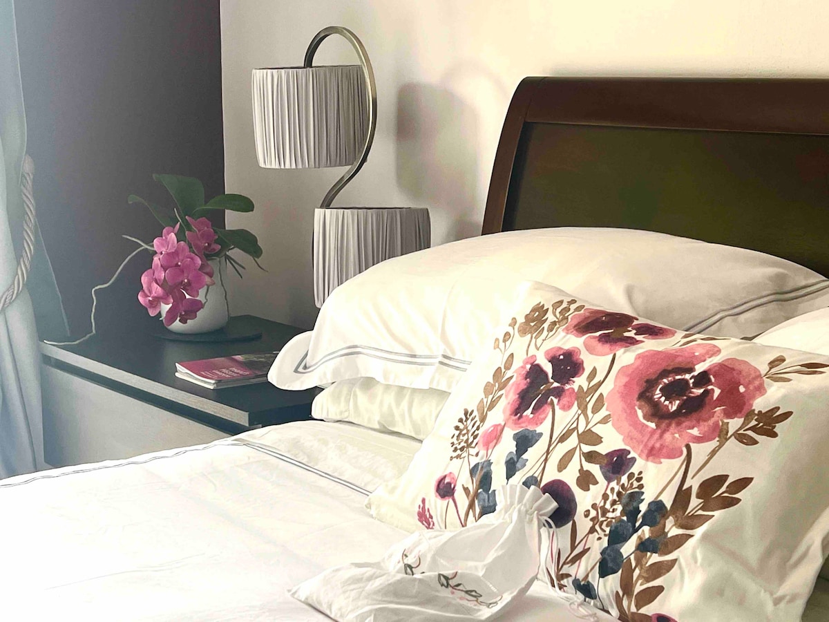 This is a very small double bedroom with shared bathroom in bright, modern and airy home recently featured on RTE's Tastes Like Home , close to all amenities, shops, trains, buses. 40 minutes from Dublin City Centre by train or car, 10 minutes from Wicklow Mountains, Powerscourt Waterfall and gardens and 10 minutes from the beautiful Bray Seafront with a wide variety of bars, restaurants and fun beachfront activities. Extra rooms available on request.