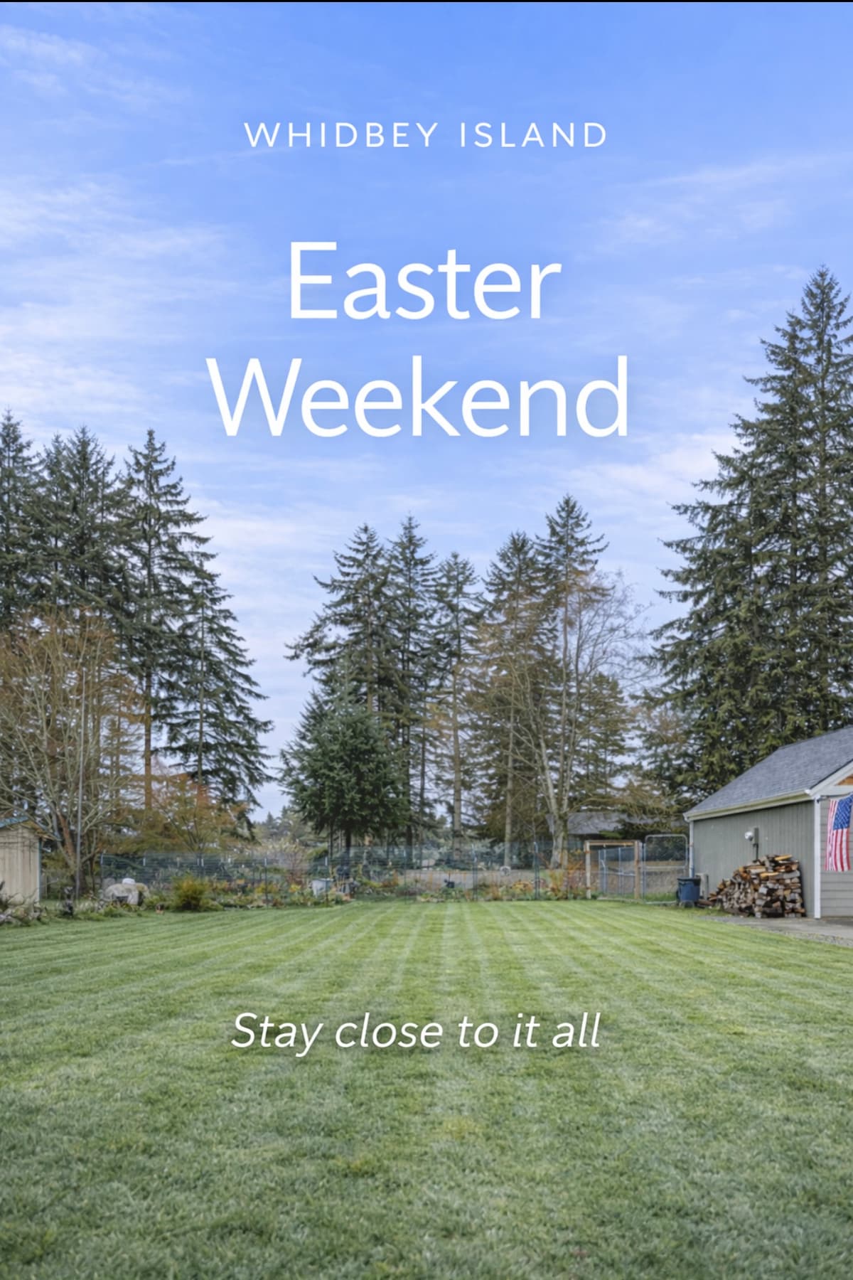Located right in the heart of Whidbey, a short drive from the mountains, beaches and hiking trails, yet a world away from the day to day. Take it easy at this unique and tranquil getaway. Enjoy a cook out by the fire pit or dine-in in your own spacious suite. This suite has its own entrance, amazing views, queen sized bed, flat screen TV, wifi, kitchenette with cooktop, small sink, microwave, mini fridge with fresh eggs from our free range chickens, full bathroom, and free private parking.