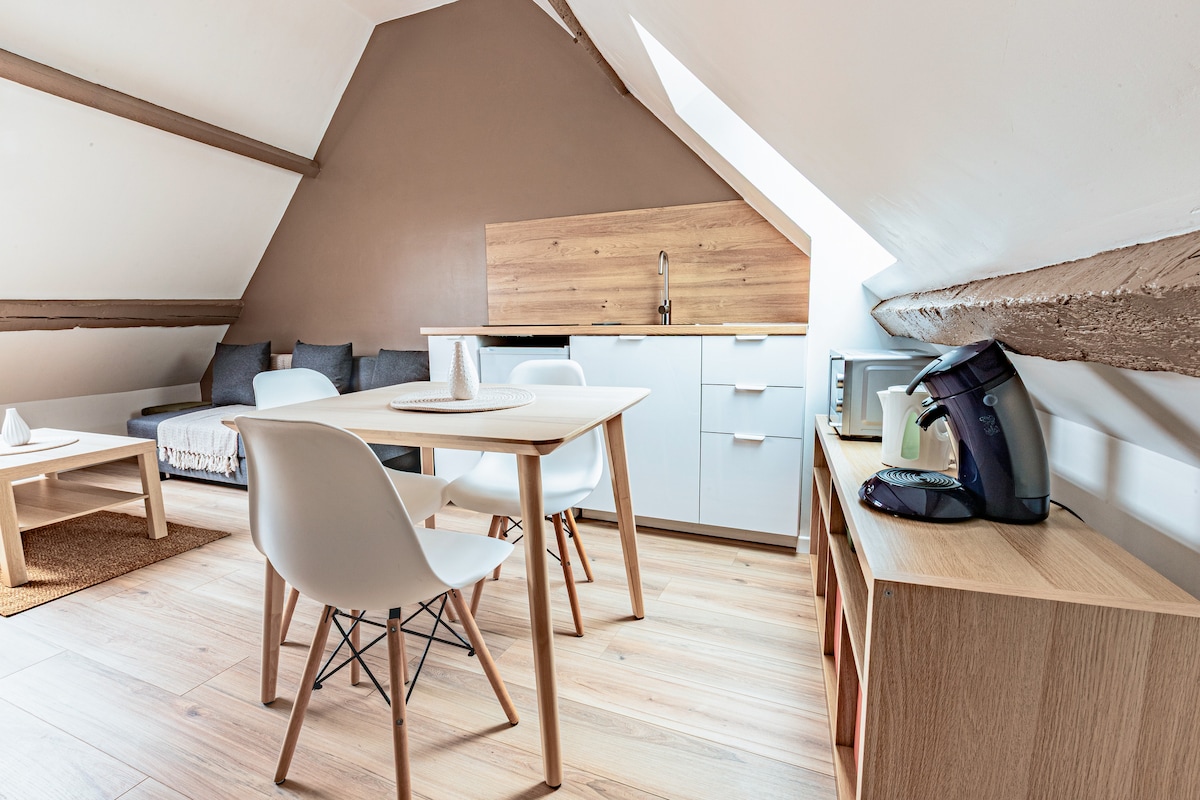 Nous louons un bel appartement dans une résidence construite en 2021 comprenant un canapé lit+ lit bébé si besoin, cuisine aménagée et équipée (1 café d’accueil et bouteille d’eau à disposition), salle de bain et wc . L’appartement est situé à proximité des commerces et transports avec un parking gratuit et si besoin nous proposons un service de transport privé. ( Aéroport , Gare, Disney, Paris…). Vélos à la journée sur demande.