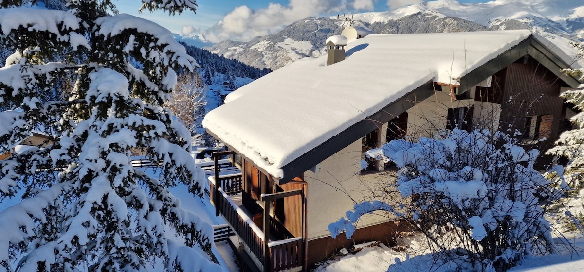 Renovated traditional detached stone and wood chalet with WiFi internet situated in the quiet Savoyard mountain village of Montagny Chef Lieu with stunning panoramic views and facing the alpine resorts of Courchevel and Méribel. Sleeps 4-5 (5th bed is a trundle bed). Vehicle is essential.