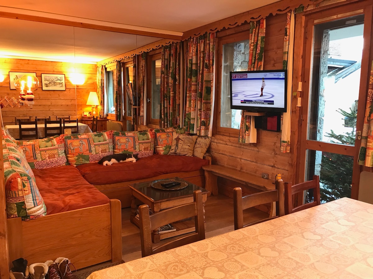 Appartement au RDC en Plein pied Centre du village 57 m2 Proche de toutes commodités: restaurants, bars, boulangerie, bus Hiver: Dimanche au Dimanche (Sauf demande exceptionnelle) Pistes 150m et proche des chemins de randonnée Casier à ski au pied des pistes (Avec sèche-chaussures) Coeur des 3 Vallées -Entrée ouverte sur la pièce à vivre -Salon TV -Table à manger et sa cuisine équipée -2 chambres (lit double 160*200, Deux Lits Twin 80*200) -Salle de bain (douche) -WC séparé -Salon de jardin