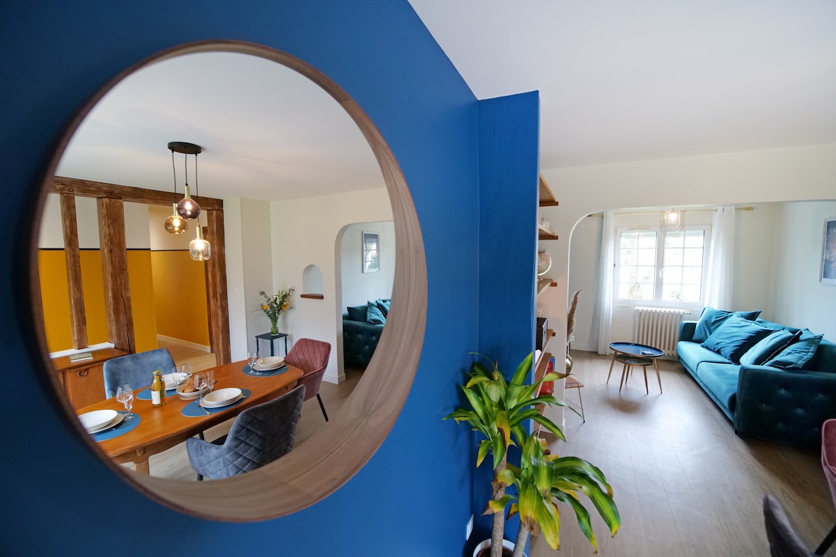 Maison ancienne pleine de charme à la campagne proche des plages du débarquement (6 kms). Tout à côté de Bayeux avec sa célèbre tapisserie (3 km). Jardin privé et clos au soleil toute la journée. A la lisière du village avec épicerie qui fait aussi boulangerie et restaurant. A 20 mns de Caen , ses Abbayes et son Mémorial de la Paix. Accès facile pour le ferry de Ouistreham vers l'Angleterre ou l'aéroport de Carpiquet. 7 mns gare de Bayeux, train direct pour Paris. Meubles vintage et créations.