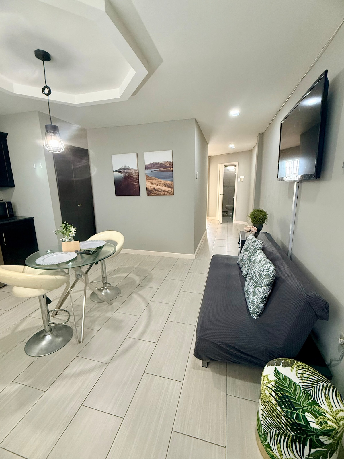 Kick back and relax in this modern, stylish space located on a private road off “Piarco Old Road” This cozy apartment is away from all the hustle and bustle but still in the vicinity of the Airport, Piarco Plaza, Trincity Mall, Several Grocery Stores and Pharmacies. This unit contains an additional sleeper bed, high-end finishes and furniture along with AC and Wi-Fi. Contains all the amenities needed for a couple spending quality time,an overnight layover or business trip.