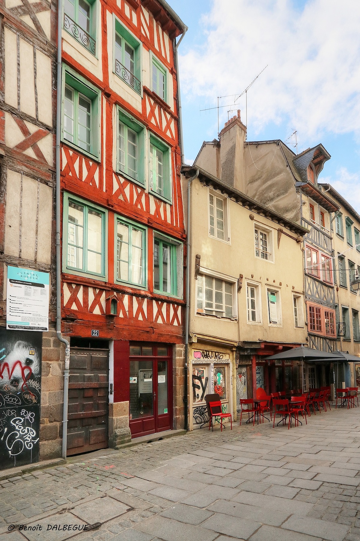 Bienvenue à l'hôtel de la Louvre ! Construit en 1659, l'immeuble dans lequel se trouve l'appartement est l'un des plus anciens de Rennes encore sur pied. L'escalier monumental et la façade sont classés aux monuments historiques. Il donne immédiatement sur la place des Lices et permet de profiter du marché le samedi matin, des bars et des restaurants qui l'environnent. Il se trouve à 5 minutes à pieds de la place et du métro Sainte Anne, et à 10 minutes du parlement.