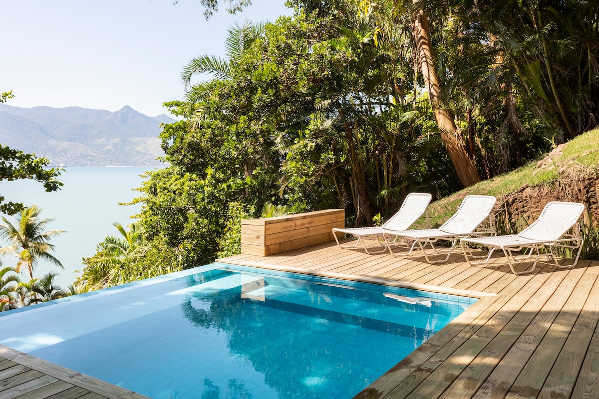 Brand new house in a quiet, paradisiacal place with total privacy, inserted in the Forest next to Parque da Bocaina in Paraty: + Panoramic view of the Valley and the Forest + 2 cozy rooms (suites) for up to 4 guests + Heated infinity pool + 100 Mbps High Speed Internet + Hot and Cold air conditioning + Private Waterfalls + Full kitchen + Gourmet Area with Barbecue and Wood Oven + 100% paved access, 10 km from downtown Paraty