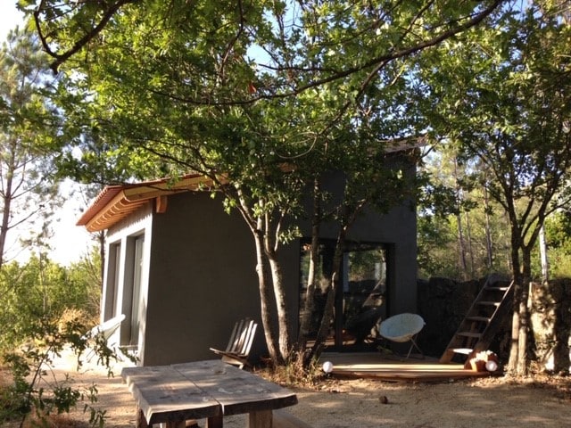 The house is located in the Mondego River Valley on walking distance of a beautifull isolated riverbeach. A great place to get away from the stressed world. Excellent for a couple or an individual who loves the simplicity, purity and silence of nature. The house includes an open kitchen and living room, a 11 m2 mezanine for sleeping, an outside shower, compost toilet in a 5000 m2 forest garden with granit boulders, natural structures, sculptures and chillout places.