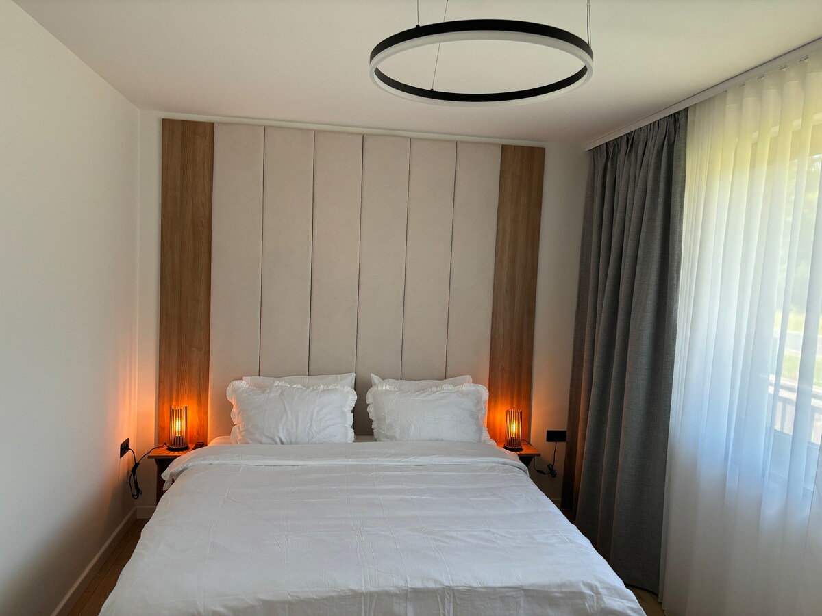 Located in a new neighborhood, near the best shopping center in Brasov, Coresi Shopping Resort. Here you can enjoy a large variety of restaurants, shops, a modern spa and a fitness center. The beautiful Old Town of Brasov is only a 10 minutes' drive. The ski slopes of Poiana Brasov are 25 minutes' drive away. Free parking place is available in front of the building. Bus station to city center is only 3 minutes walking distance.