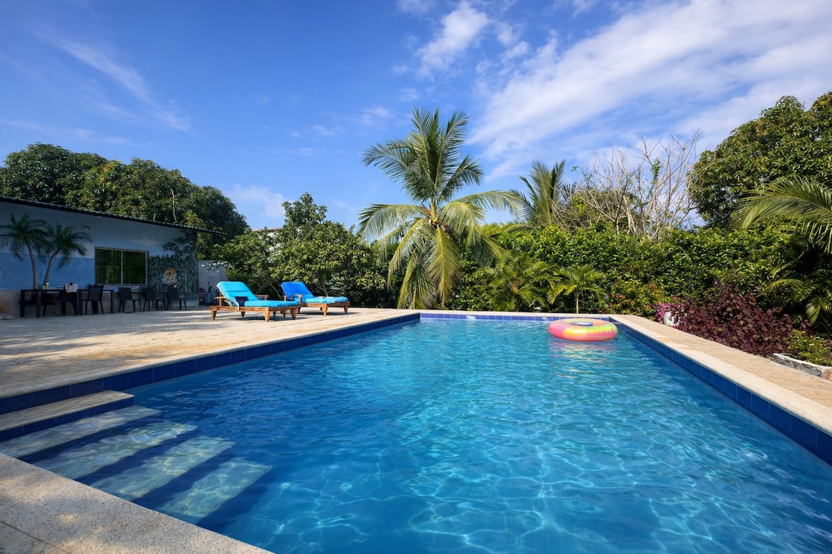 This rustic house with a Caribbean view is perfect for families or groups of friends. Just 7 minutes from Tolú’s main square and 5 minutes from Playa El Francés. Spaces include: – A tank-style pool overlooking the sea – Outdoor dining area, beach chairs, hammocks, and a large kiosk – 7 bedrooms with fans and A/C – Fully equipped kitchen – Capacity for up to 16 guests – Free Wi-Fi and basic cleaning service included (does not cover cooking or laundry) – 24/7 on-site caretaker