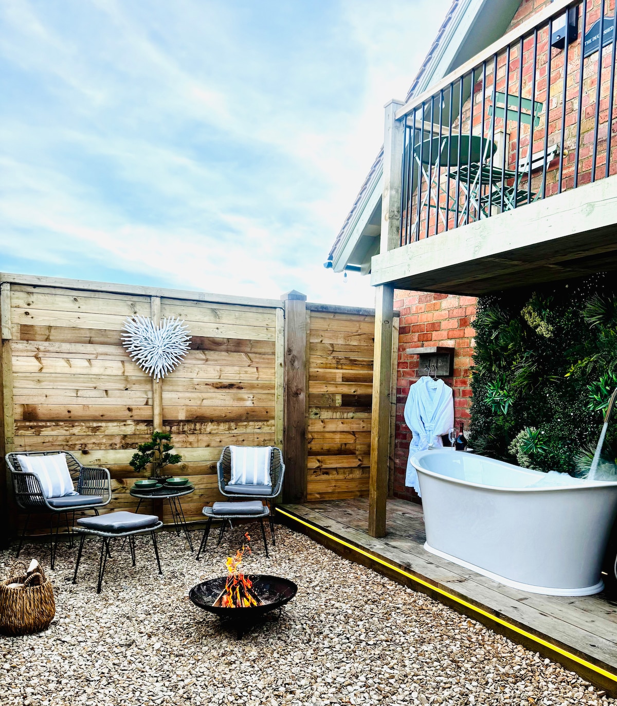 🦆 Immaculately kept and thoughtfully designed annex blends homely comfort with a touch of luxury. On the edge of the Cotswolds and close to Stratford-upon-Avon, it offers lovely countryside views and a retreat for two. Inside, enjoy the open-plan kitchen with a Nespresso machine, a spotless and comfortable bed, a cosy lounge, and a pristine bathroom. Outside, unwind in the private, sheltered garden with outdoor bath, fire pit, and seating. Brand new exterior (est 2026). EV charging available.