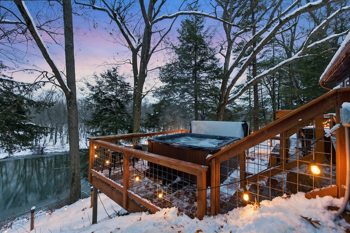 Fire & Water | Cozy River Cabin + Hot Tub Views