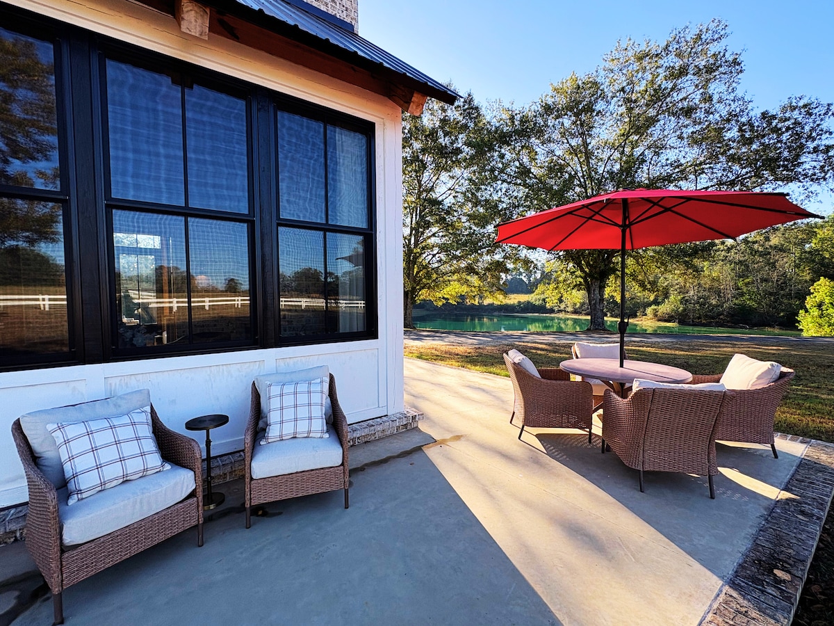 This beautifully designed, luxury home sits on a 4 acre pond surrounded by 62 peaceful acres with tall mature trees! Watch the horses grazing in the fields while drinking your morning coffee on the large decks, have outdoor movie night on the big screen & enjoy a glass of wine in front of the firepits while watching the incredible sunsets from this stunning property! Located just 10 minutes from Gant Lake and Andalusia, & only a 90 min drive to the amazing emerald beaches at Pensacola & Destin!