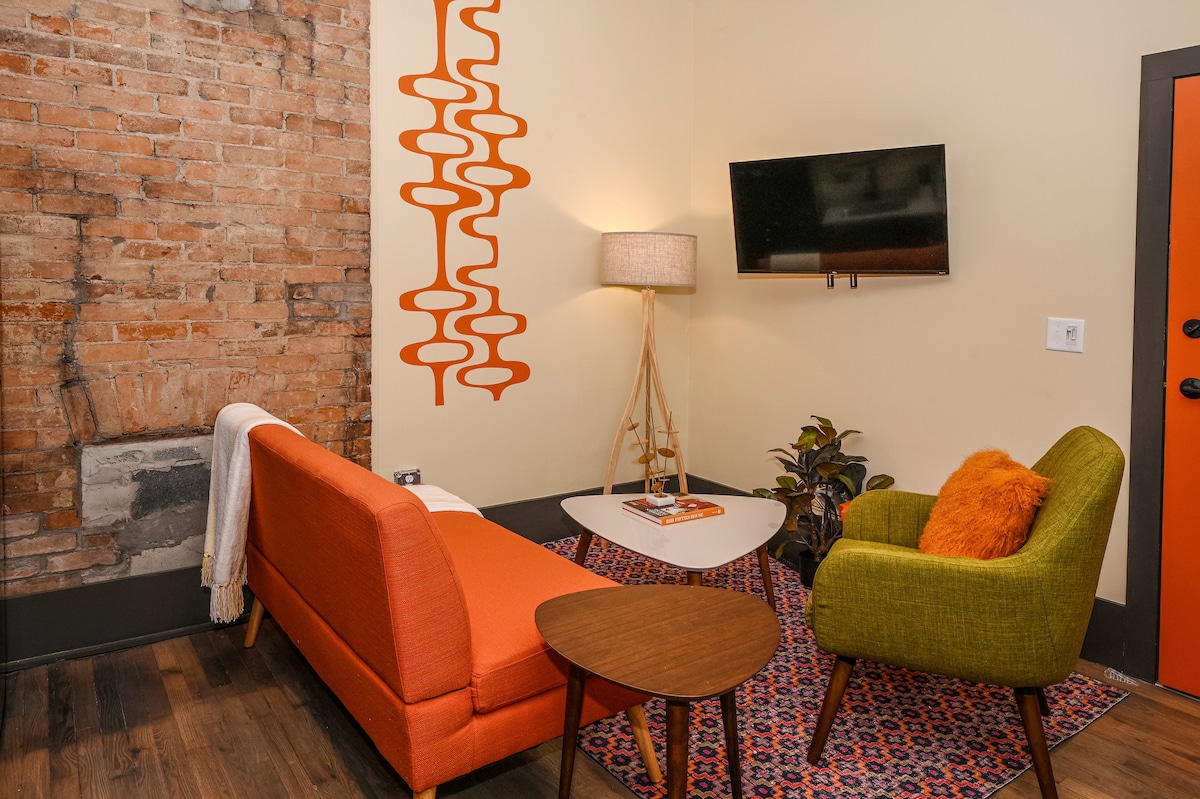 The Adaline is located in the heart of Newport's historic and business district. This beautiful one-bedroom is a 3rd-floor apartment with a private rooftop terrace. It is just a 10-minute walk away from the Newport Levee, which features many restaurants, shops, the aquarium, and the Purple People Bridge, which is a pedestrian-only bridge that crosses over to Cincinnati. The business district also features excellent boutiques, antique stores, restaurants, bars, music venues, and much more.