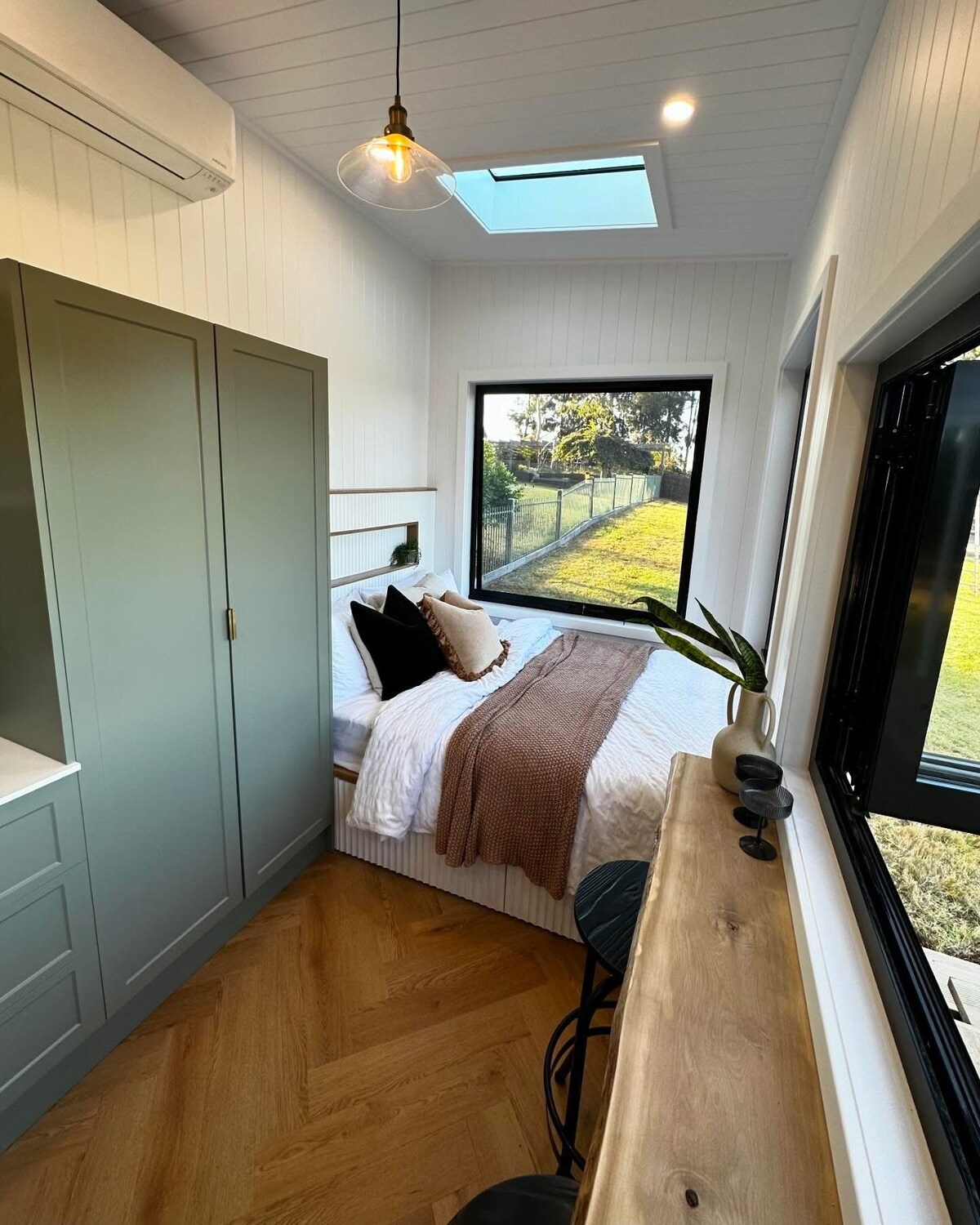 Light, bright and spacious. From the moment you walk in you'll feel calm and relaxed. Fire up the wood fire or simply press a button for instant warmth or cool. Comfy Koala mattresses on beds also equipped with electric blankets. Clean, white stone bench tops and a large cooktop and oven if eating-in is your plan. Stylish and comfortable living spaces. Streamlined bathroom and ensuite, each with a large glass-walled shower. Enjoy the grassy front deck area or sit around the fire pit at the back.