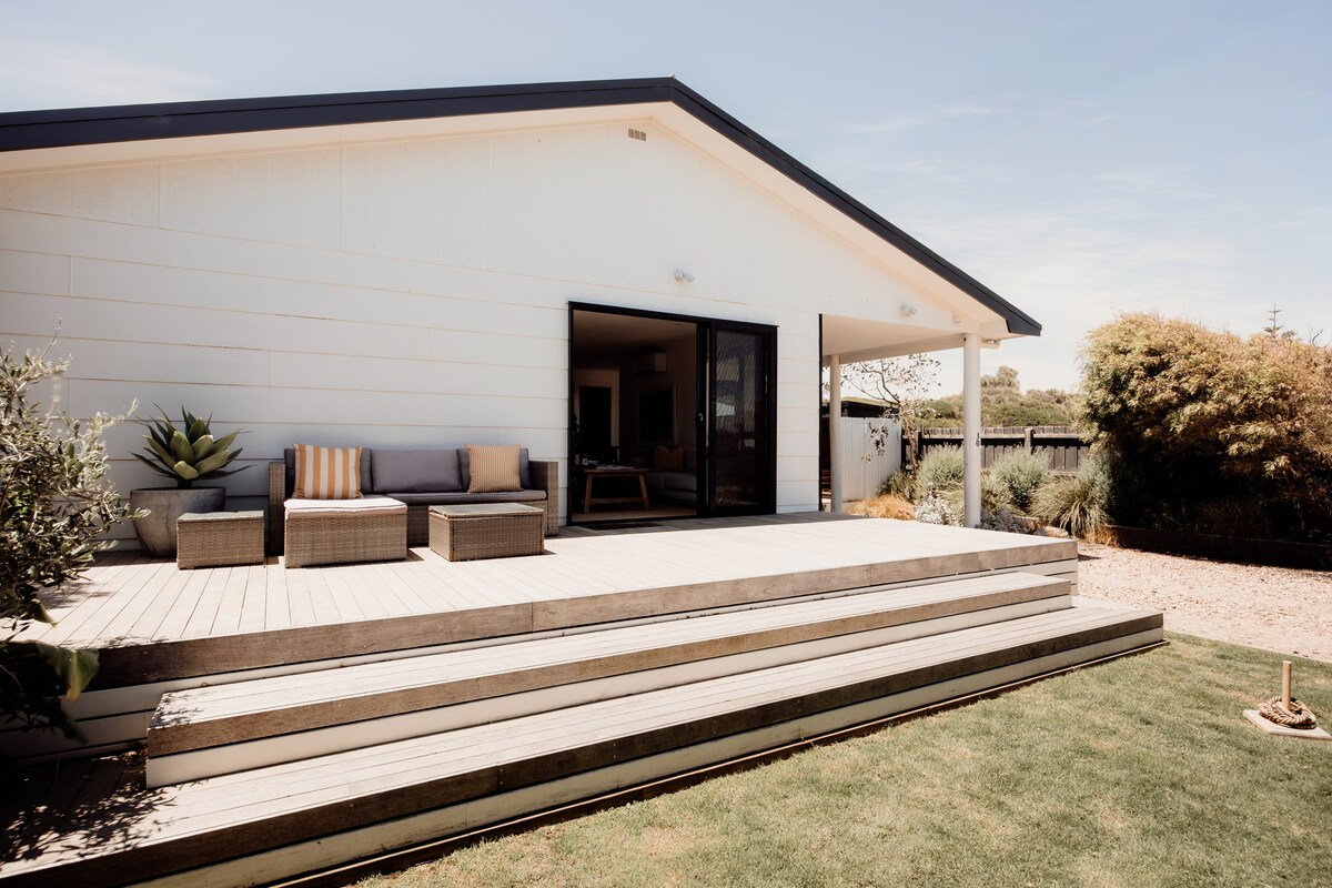 轻松的海滨度假屋 坐落在宁静的死胡同尽头,正对着海滨,这是一座专为赤脚度假的海边小屋。客人可以走到岩石池探险,在草地上玩游戏,观赏沙袋鼠和野生动物,或在露台上聚会,一边烧烤一边欣赏海浪。 两层起居空间(楼上和楼下),非常适合家庭入住,孩子的玩具也能收纳整齐 室外休闲区和烧烤炉,是放松、用餐、享受海风的好地方 提供所有用品:床上用品、毛巾和基本设施齐全,让您有回到家的感觉,而不仅仅是短租住宿 岛上探险:企鹅、考拉、冲浪海滩、野生动物公园、摩托车大奖赛、夏日嘉年华、黄昏市集以及各式二手店近在咫尺 舒适惬意:柔软的床铺和伴随美景的清晨咖啡 这是一座经典的老式海滨小屋,充满特色和舒适感,适合轻松自在的假期,而不是追求华丽完美。 供暖设备使用燃气罐,请在外出或就寝时关闭。 长周末需至少入住 3 晚。 我们是注册并获得巴斯海岸认证的合法度假屋。