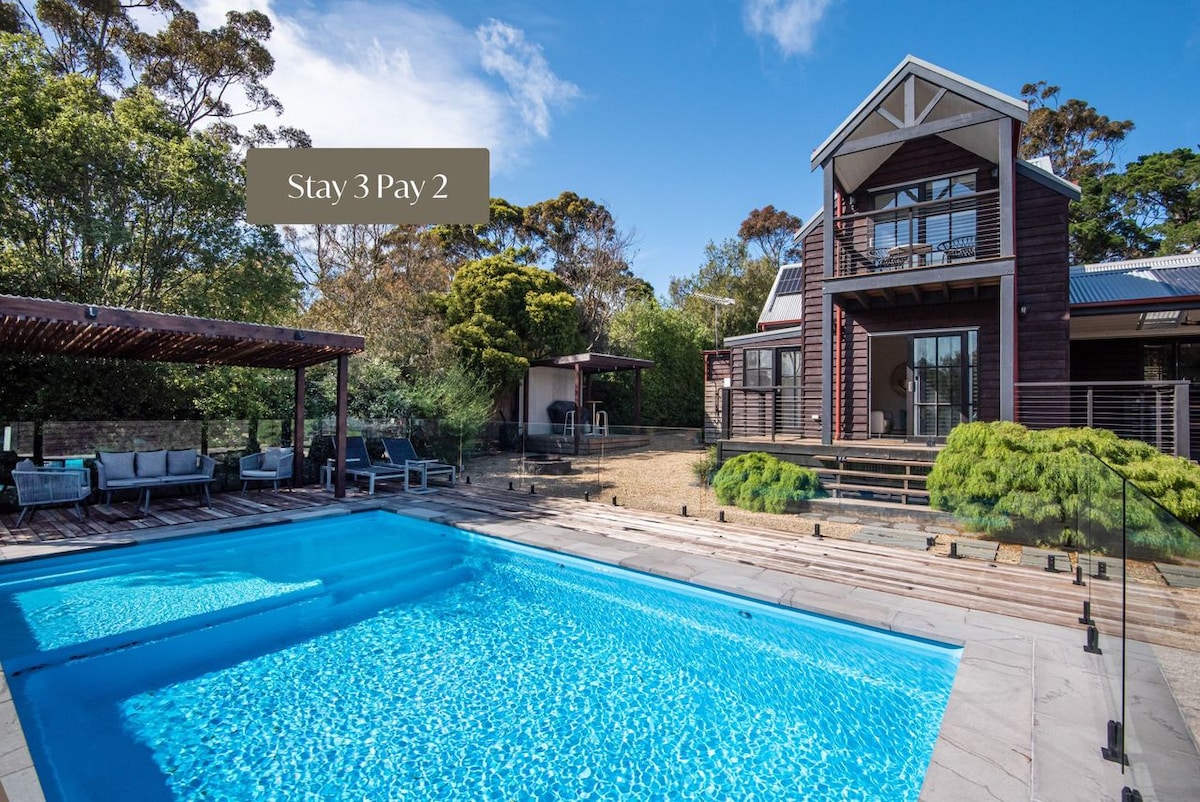 Poet’s Corner House on Phillip Island is a peaceful retreat that blends modern comfort with relaxed coastal charm. With two queen bedrooms, a sunlit loft lounge, and a cozy fireplace, it’s ideal for couples, families, or friends. Prepare meals in the gourmet kitchen or outdoors on the BBQ and pizza oven, then unwind in the garden hammock under the stars. Minutes from Surf Beach, local dining, and the Penguin Parade, it’s a welcoming base to slow down, recharge, and enjoy “Island Time.”