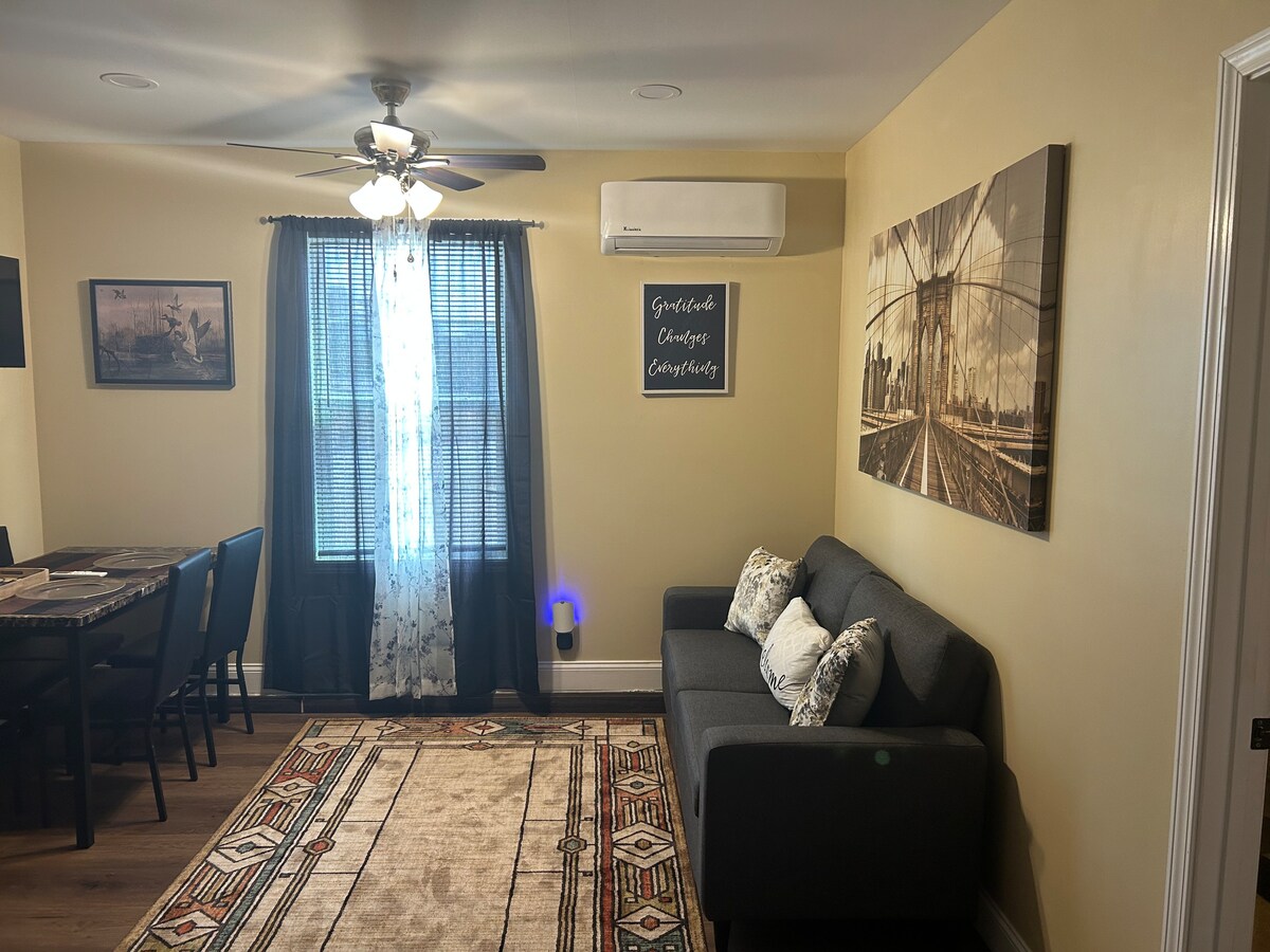 Spacious terrace apartment with private keyless entry on lake front property at the end of a cul-de-sac. It is a self-contained unit with your own bathroom and full kitchen (no dishwasher). Please note …there is a living space above the unit with two adult occupants so there may be some foot noise. TV is Spectrum TV and WI-FI . NO PARTIES ALLOWED.