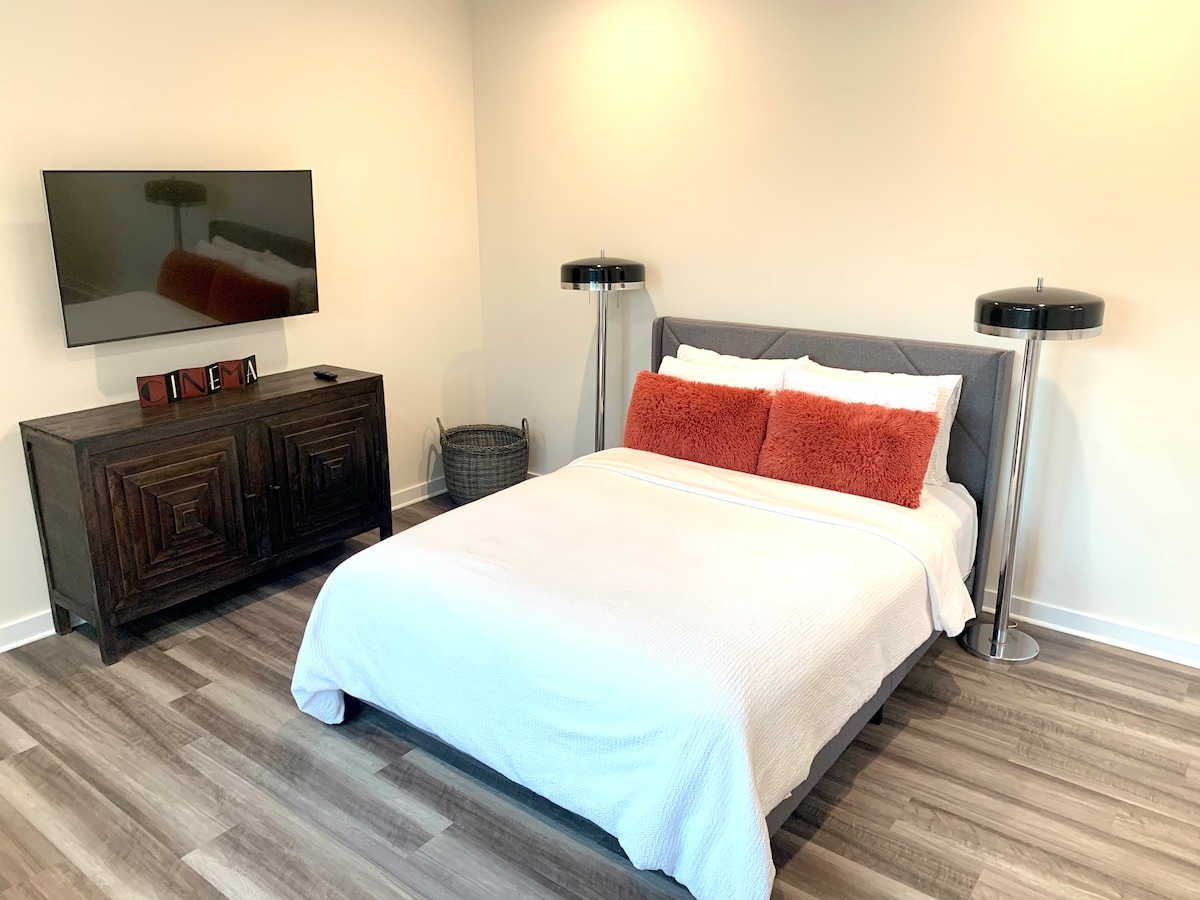 The Succulent is a light, bright and airy guest house with modern touches in charming Downtown Newnan. This newly built, detached, above garage guest house enjoys a private space and tree-top views, while sharing the property with a 1940’s craftsman family home, in the sought after Featherston Heights neighborhood. Experience the many local restaurants, boutiques, parks, movie locations and events near the historic Newnan Square, which is a quick 3 minute drive or a lovely 20 minute walk.