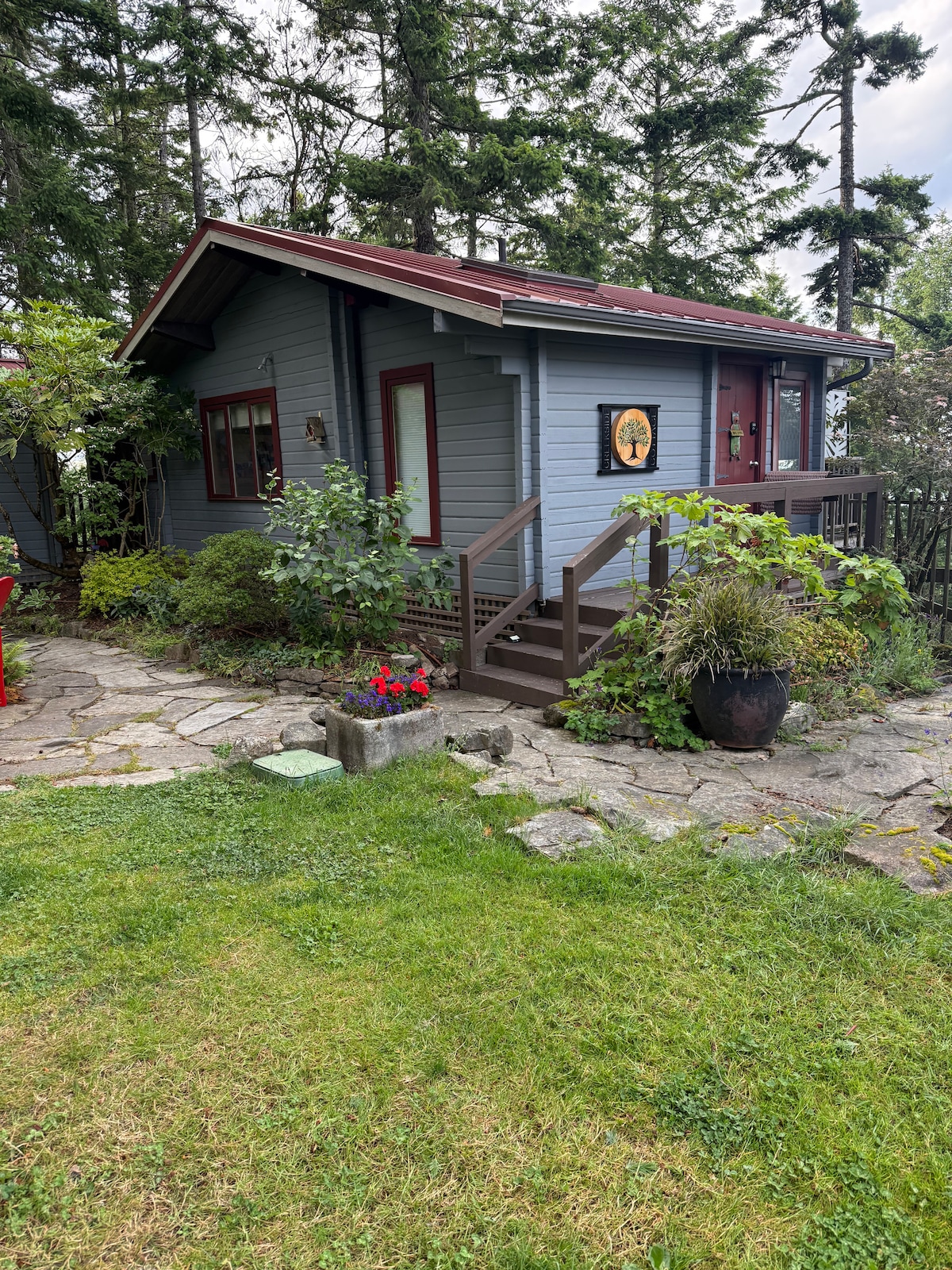 This clean, cozy cottage with a Scandi feel is located a short 7 minute walk from the best swimming and sunset beach on Salt Spring. Equipped with a kitchen, bathroom, and queen bed this is the perfect spot to enjoy a taste of the Salt Spring life. Shop at a local farm stand and use the kitchen to cook up a farm to table meal. Then go for a walk to the beach to enjoy the best sunset on Salt Spring! After a quick walk home, a comfy bed awaits, or stay up and play one of many board games offered!