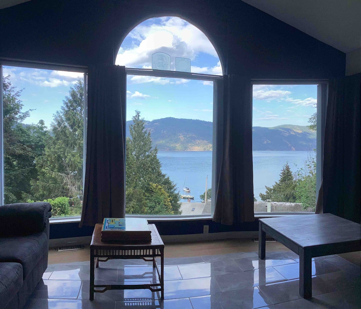 Relax and enjoy our character home with a private deck that overlooks Cowichan Bay and Mount Tzouhalem. Lounge on the patio while watching boats in the bay and herons and eagles overhead. The quaint village of Cowichan Bay is a short walk down the hill, offering artisan shops, fresh baked goods and a variety of excellent restaurants. Hiking, biking, water activities, golf, vineyards and local farms are all at your doorstep. Cowichan Bay is part of the South Island Rotary Bike Route!