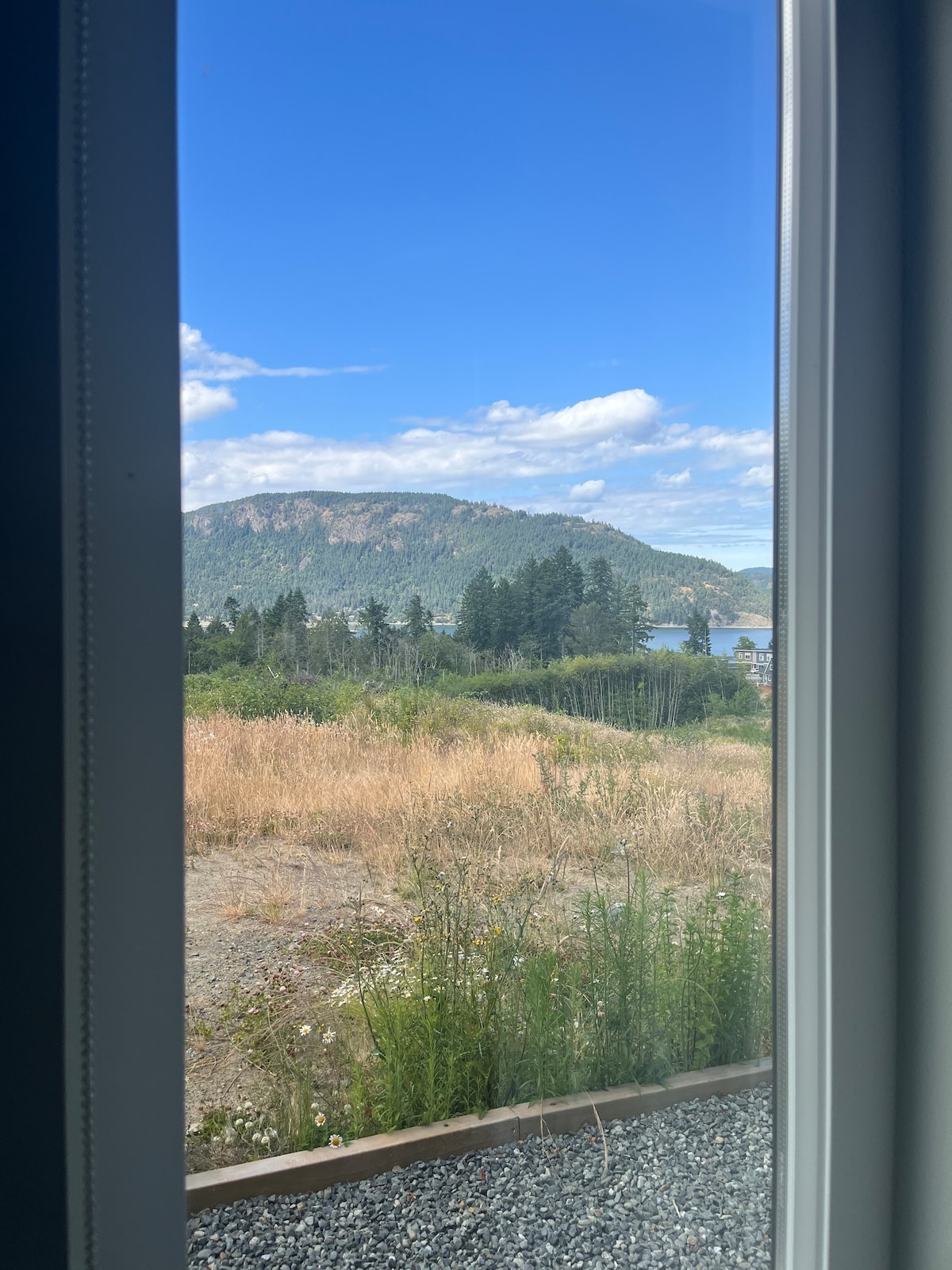 Step Inn Stones is a delightful, private entry suite located in the quaint Historical Village of Cowichan Bay, BC. Located on a no-through road above the village with a beautiful ocean view for a tranquil getaway, we are a five-minute walk to fine dining, shops, pubs, marinas and more. Our newly renovated suite has a small kitchenette, bar counter with a view, new comfy queen sized bed, seating for relaxing, reading and TV watching and a bathroom with heated floors and a rain head shower.