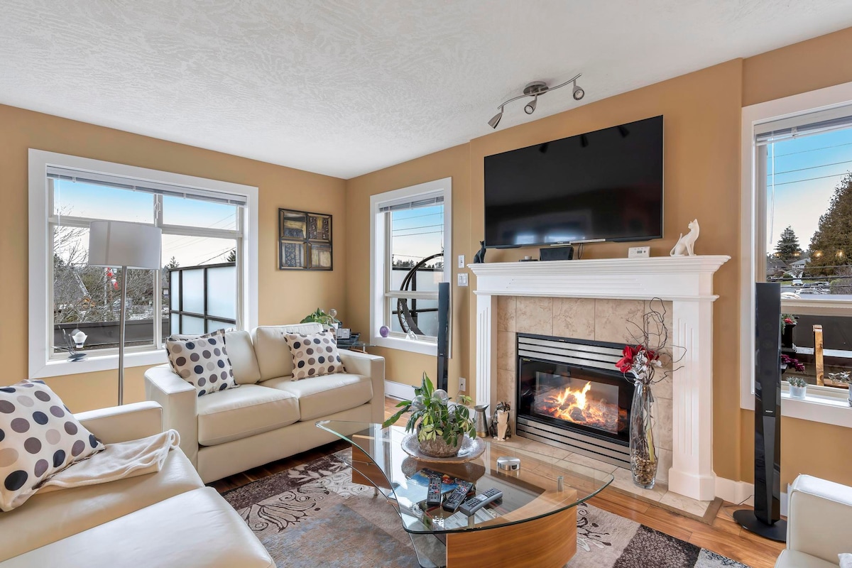 Welcome to our comfortable and quiet two bedroom walk-up condominium (1 flight of stairs) in the heart of Saanichton. Your home away from home is spacious and comfortably furnished. The chef’s kitchen has everything you need to make a quick bite or a gourmet meal. Air conditioning keeps you cool in the summer, and the fireplace brings warmth and ambiance in the winter months. High-speed wireless internet means you can always be connected, and there’s a dedicated workspace in the second bedroom.