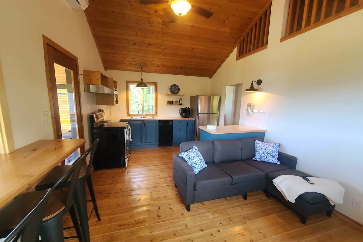 The "Lower" Cottage, a serene beachfront retreat featuring an exclusive private hot tub with stunning lake views, experience tranquility at its finest ,where this fantastic property includes a wharf, perfect for boating enthusiasts. Bring your boat, fishing rods, even a tent, as there’s plenty of space ! This charming cottage accommodates up to six guests, 1 bedroom featuring a queen bed, a Murphy bed in the living room, pullout sofa bed. Create unforgettable memories at this lakeside escape!