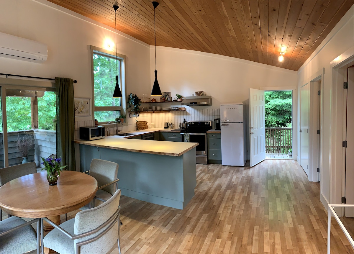 Recharge and relax at this peaceful, sustainable stay. Walk to the beach, to dinner, the theatre or sit and relax in the asian inspired garden. Nestled in the heart of old town, this private carriage house, second story suite offers a full kitchen and outside seating area. With an ocean and courtyard view you can wake to the sunrise. Excellent walkability - Kin Beach, the Chemainus Theatre and many shops and restaurants are only a block or two away.