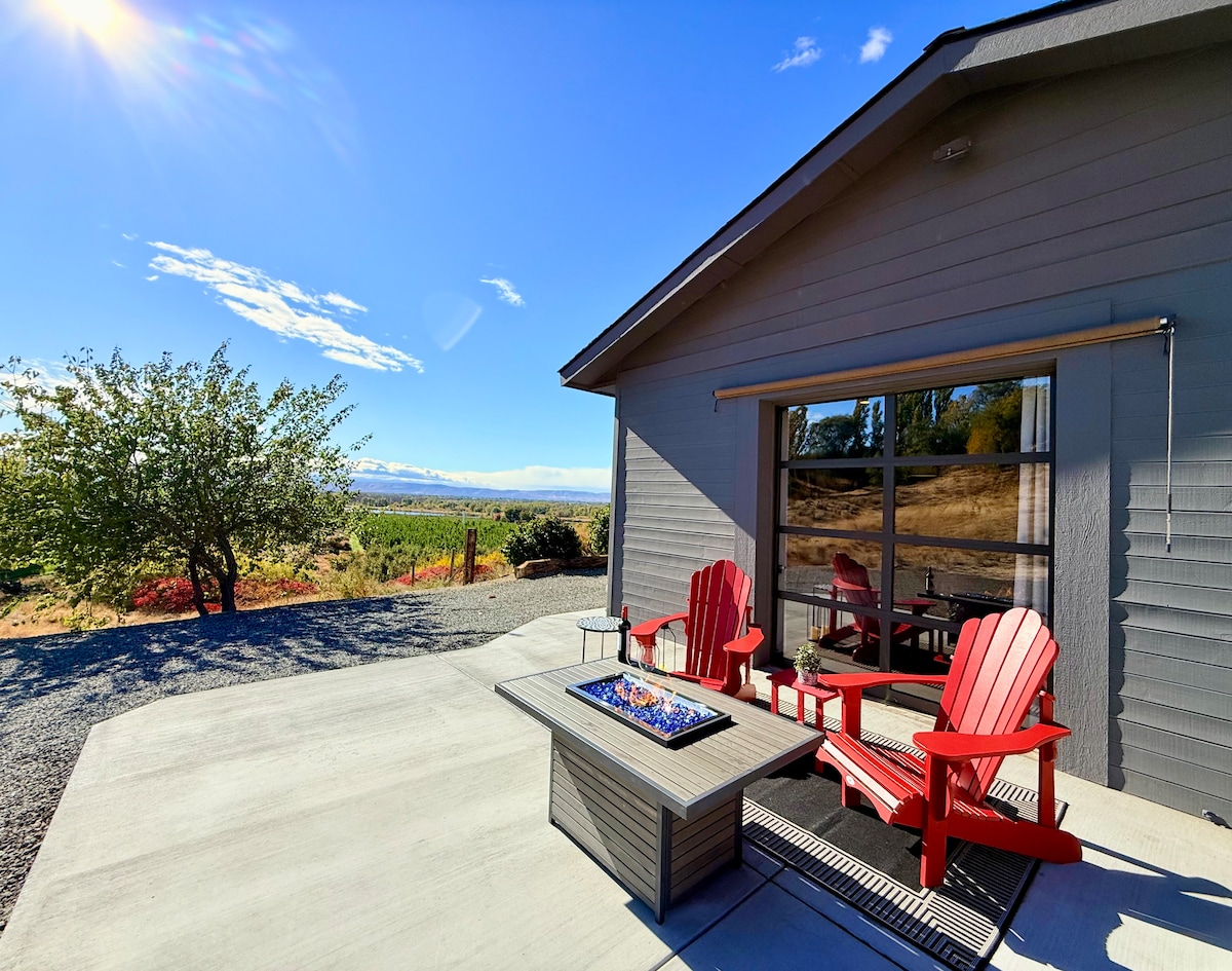 Welcome to Cabernet Hill nestled in the heart of wine country! Our cozy private Airbnb retreat boasts beautiful panoramic views of orchards and Mount Adams. Look through our personal digital guidebook to see all the delicious food and beverage options just a few minutes away, or simply relax on our private patio and fire table area. We have thoughtfully curated a space that would provide comfort and relaxation with all the amenities you’d need for a country side stay.