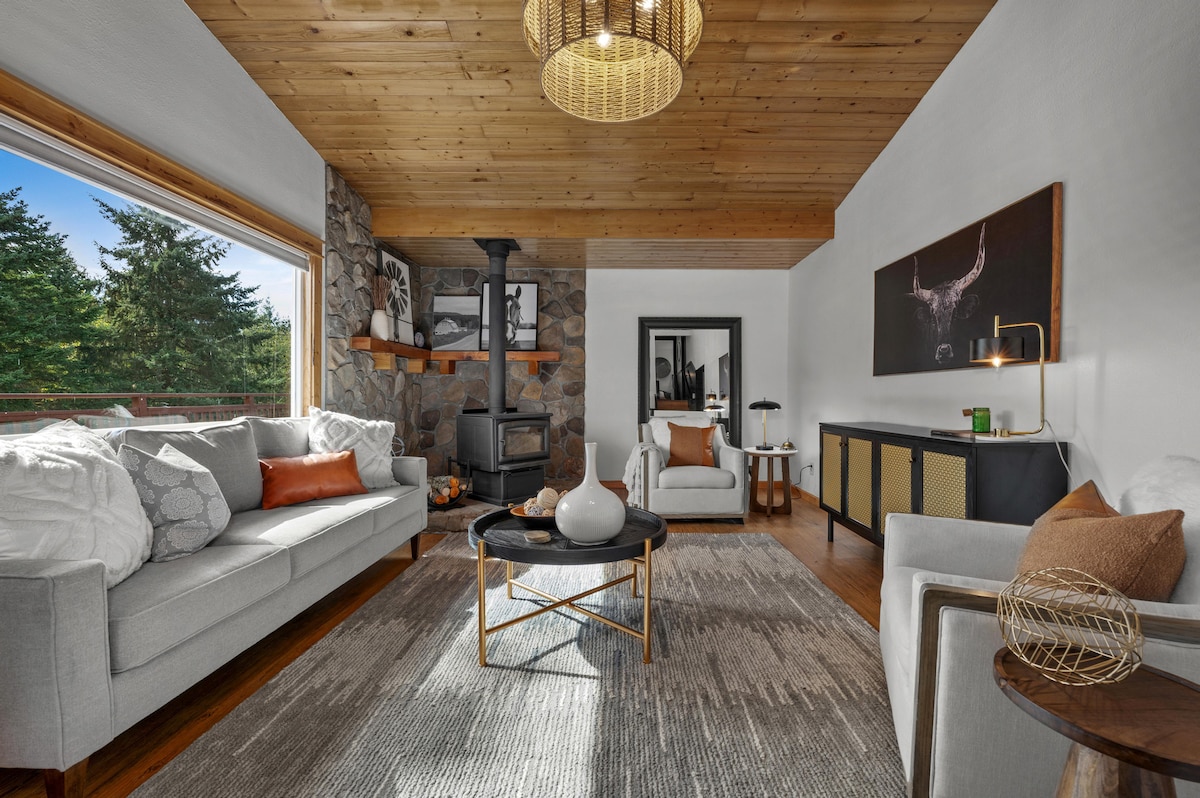 Welcome to The Big Eddy, a riverfront oasis on the beautiful Kalama river in Washington state! Escape to a contemporary cabin featuring vaulted ceilings and an expansive wraparound porch to capture all the views of the river and wildlife. River access and your own swimming hole! Firepit, multiple outdoor seating areas, modern amenities, northwest decor, and everything you'll need to getaway and recharge. Experience peace and tranquility tucked away in the forest on the river!