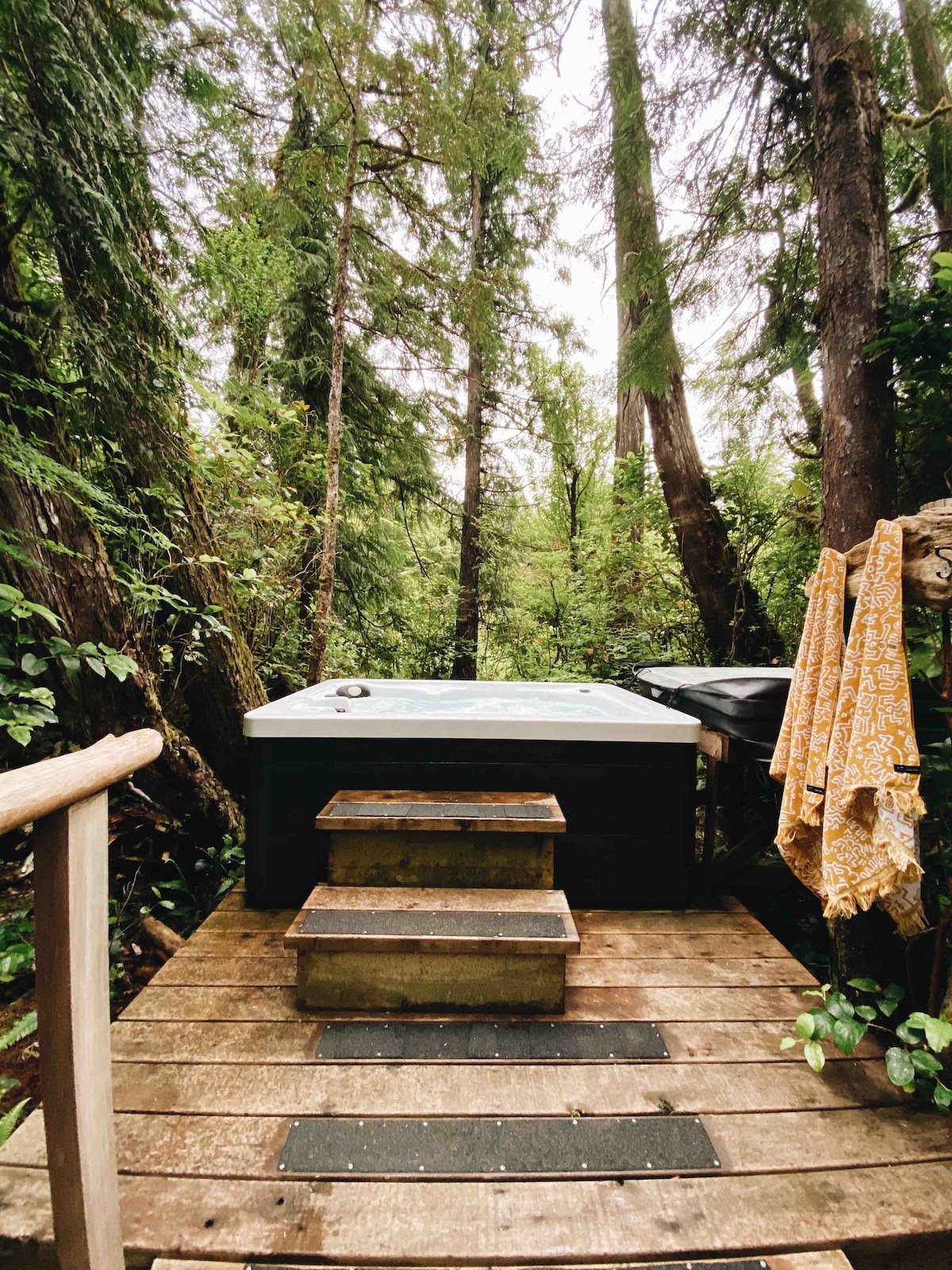 Rainforest Retreat is a one bedroom suite with a plush king bed. Complete with fully equipped kitchen, cable tv , wifi, private entrance and deck, barbecue, hot tub and fire pit. Fully furnished with all the amenities of home. We are located 6km from downtown Tofino and minutes walk to Chesterman Beach. A 7km bike and walking path is just at the end of our street and Pacific Rim National Park is a a 4 min drive . My place is great for couples and solo adventures.