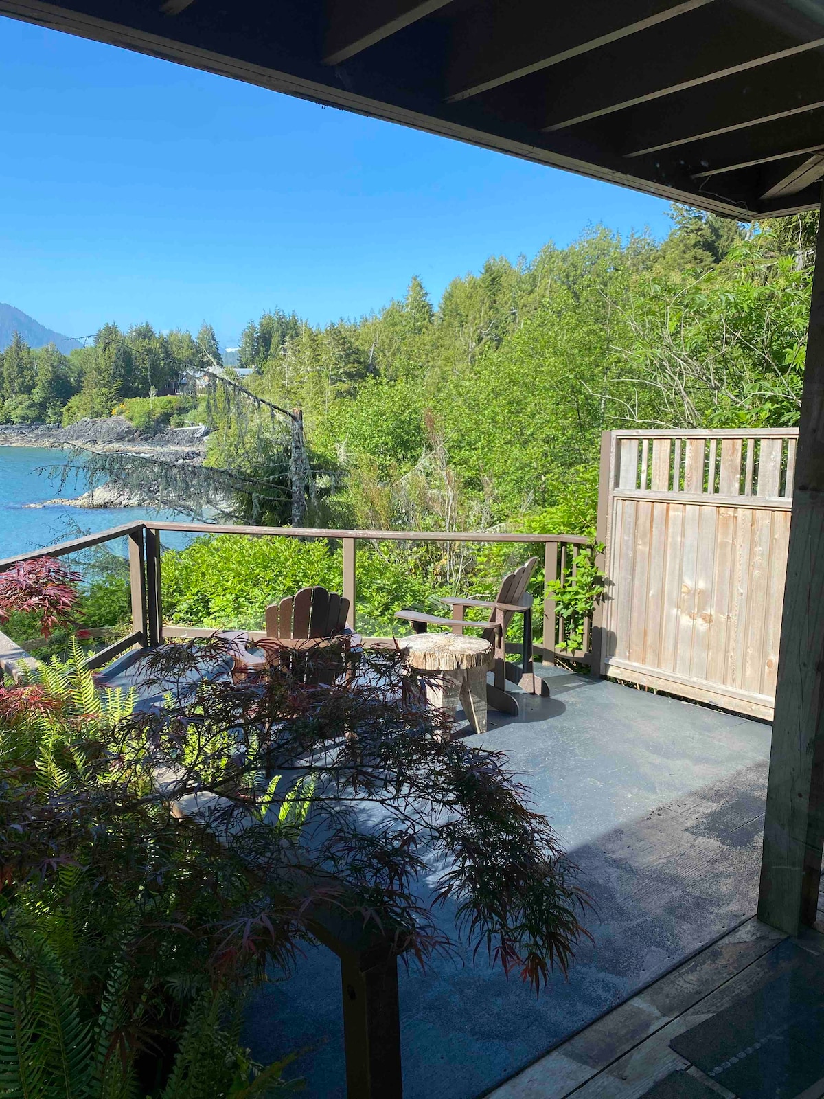 West Coast style post and beam home. Very private old growth forest setting with a surf inspired theme. Sleeps 6. Walking distance to Tofino's best surfing beaches, Cox Bay and Chesterman Beach. 7 minute drive to central Tofino. Fully legal and licensed with the District of Tofino.