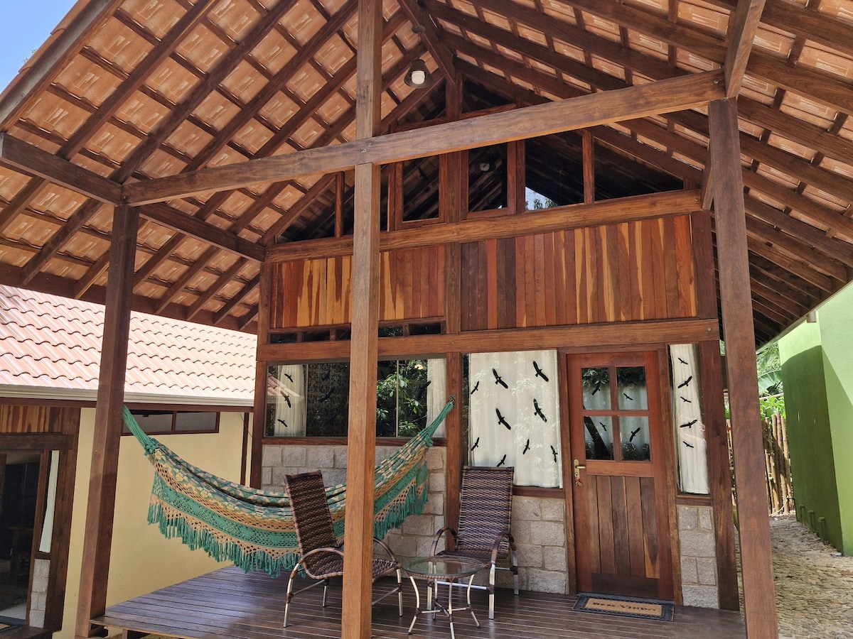 Situada numa reserva particular, cercada pelo Parque Nacional, é um espaço para imersão consigo mesmo e a natureza. O chalé foi projetada para um casal ou 3 pessoas. O espaço é destinado a contemplação, meditação,reencontro com a natureza, trilhas ecológicas numa reserva de 4ha, observação de aves e fauna e férias românticas. Vale a pena ressaltar que os espaços comuns são partilhados com 3 outros chalés.O chalé fica 5km do centro, sendo 1,5km de chão e 3,5km asfalto. Crianças apartir de 10anos.