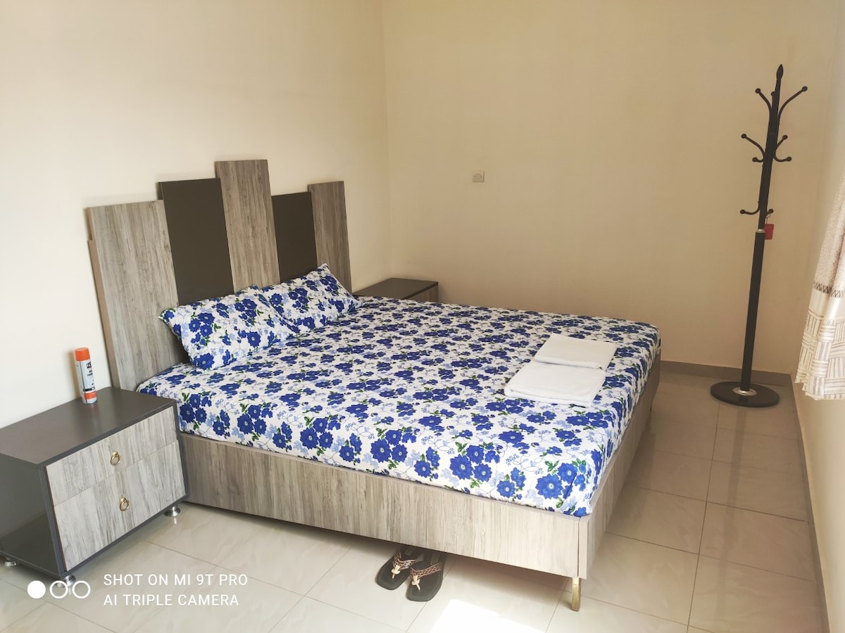 Détendez-vous dans ce logement calme et élégant à lansanyah-barage.,Située 5 minutes a pied au bord de la grande route principale, d'un centre commerciale, d'un marché, une pompe essence total etc.