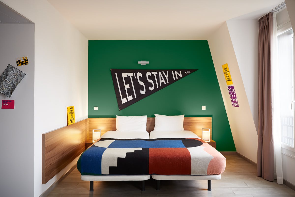 A practical option with two separate beds, a private bathroom, lounge chair, and workspace. Ideal for friends or colleagues traveling together. Airbnb guests have access to the roof top pool and various hotel amenities. City tax of 8.45 Euro/per night/per person will be charged at the hotel.