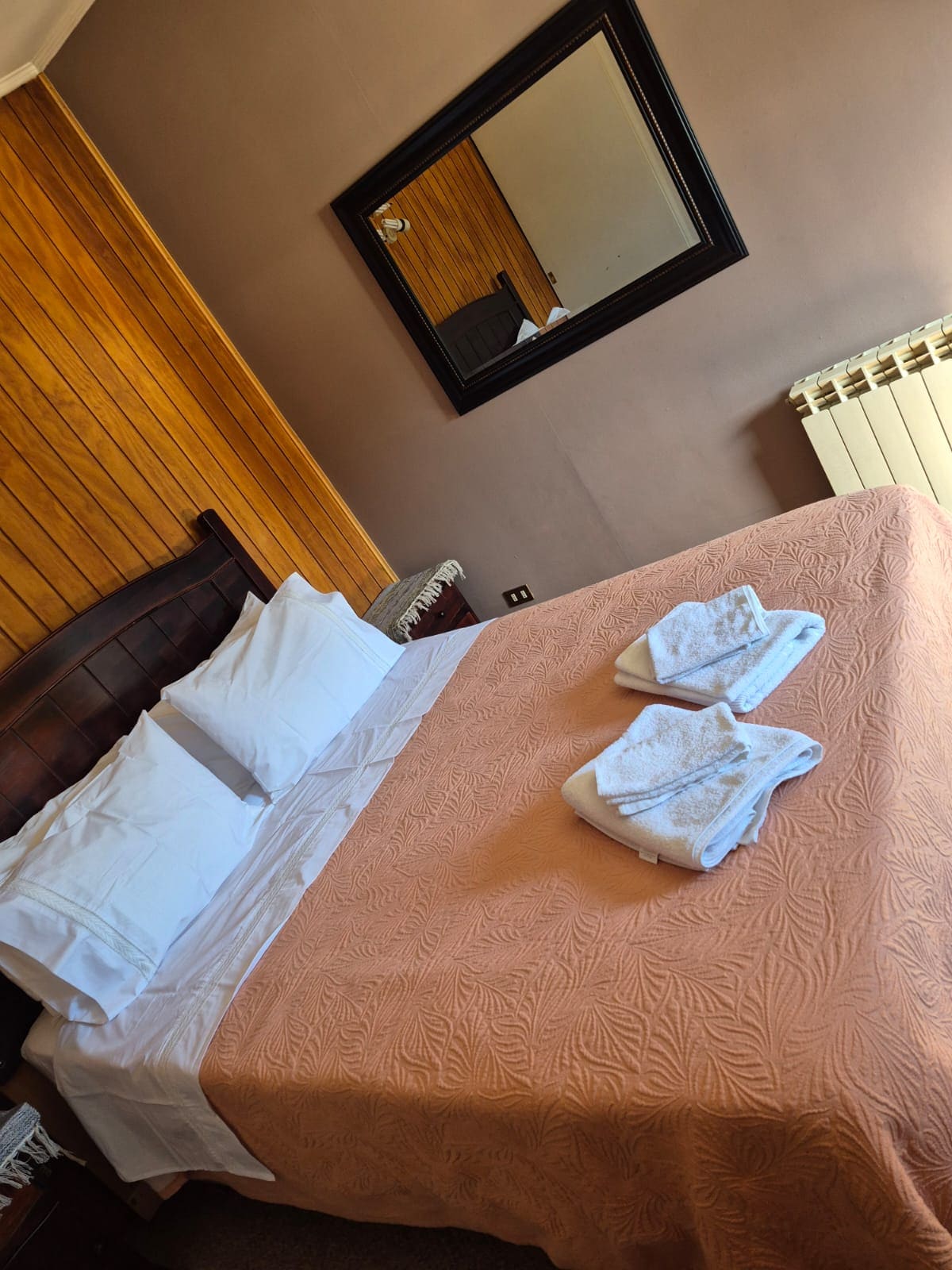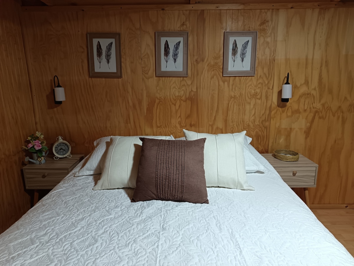 Hermosa cabaña -Martín Pescador- de madera tejuela de 55 mts2 con 2 habitaciones, una con cama matrimonial de 2 plazas y otra con cama plaza y media más cama nido de una plaza. Calefacción con radiador eléctrico y adicional calefacción a Pellet central. Amplio baño con lavadora incluida. Cocina equipada y Frigobar. Excelente construcción con aislación térmica, piso de madera y todos los ventanales en Termopanel. Opción de un excelente desayuno por $7.500 pesos chilenos p/p.