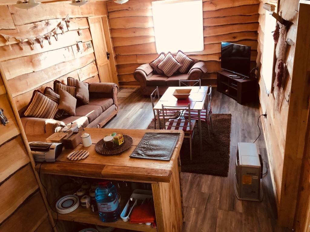 Cabaña contenedor, acondicionada cómodamente para 3 huéspedes, ubicada a 5-7 minutos del centro de Coyhaique, con hermosa vista al cerro Mackay. La cabaña cuenta con 2 camas, habitación principal con 1 cama dos plazas y la segunda con 1 cama de plaza y media. Cocina completa, horno, hervidor, Nespresso. Baño con ducha, agua caliente. El living cuenta con un cómodo sofá de madera, y un moderno aire acondicionado.En esta cabaña son bienvenidos perros y gatos, (Pet Friendly).