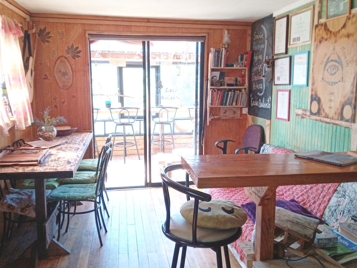 Disfruta de la sencillez de este alojamiento tranquilo, con una vista excepcional. Ponemos nuestro hogar a disposición con todos los accesorios para tener una grata estadía, somos amantes de los animales por lo que esperamos tengas buena recepción con estos, es un hogar sencillo acogedor con todo lo necesario. Es una casa pequeña clásica sureña