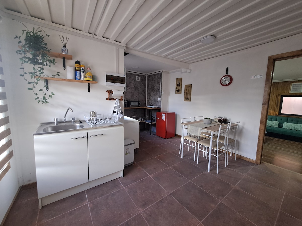 Es un pequeño departamento, muy acogedor y tranquilo para los viajeros de paso por nuestra maravillosa región, cercano a varios negocios locales e incluso a un Cesfam en caso de emergencia, con locomoción alrededor y a una distancia prudente del centro de la ciudad para la persona que deseé caminar, en caso contrario, locomoción pasa al frente del establecimiento. El departamento está equipado con todo lo necesario para su estadía.
