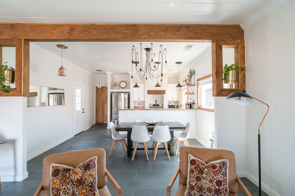 Our charming1930s home was newly renovated in 2023 with two-master King suites plus a 1/2 bath.Our Airbnb is in the heart of Old Town Cottonwood, located just steps away from restaurants,shops,and vineyards,it is the perfect retreat for your next vacation. The home also features an extra half-bathroom, and a Queen Murphy bed perfect for accommodating additional guests. The home can comfortably sleep up to six guests,making it a great option for families or a group of friends traveling together.