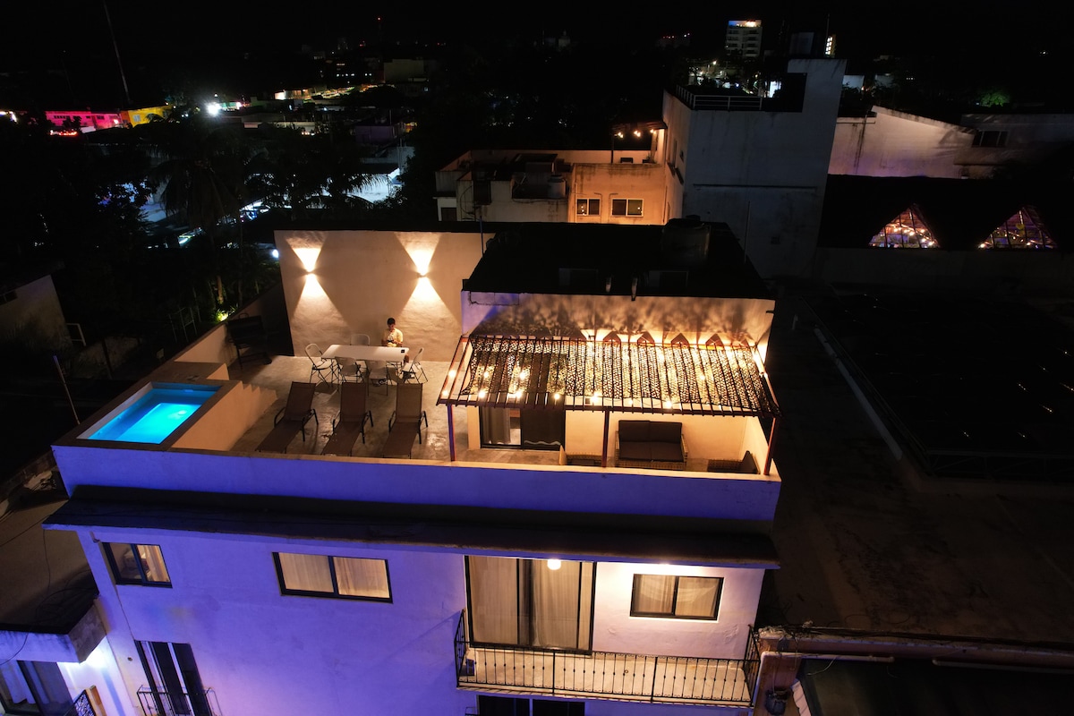 Modern, adults-only apartment in a quiet neighborhood just minutes from downtown. Guests love the peaceful setting and return often for the rooftop plunge pool, BBQ area, and daily housekeeping. Cruise the coast on free bikes or explore nearby shops and cafes. ✔ Rooftop Pool ✔ Starlink WiFi ✔ Free Bikes ✔ Full Kitchen ✔ Night Security ➕ 7-Eleven only one block away Bonus: 10% off scuba diving with top-rated Scuba Life Cozumel. Ages 12+ only.