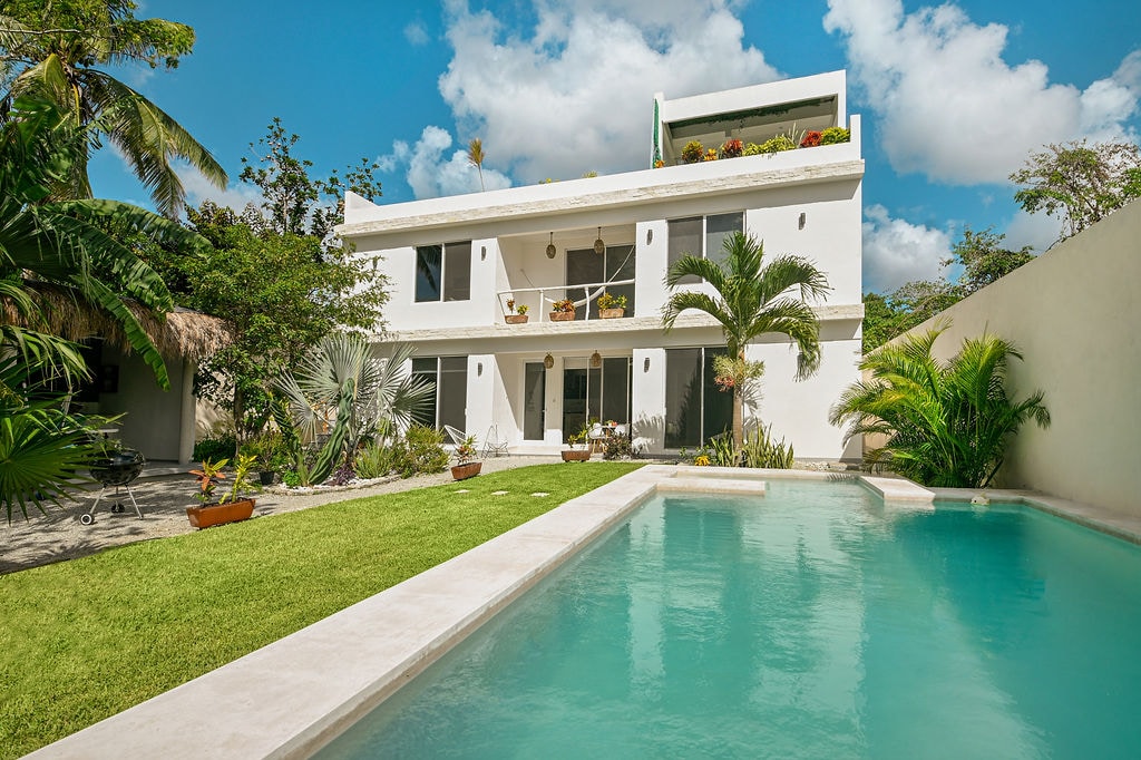 Modern, adults-only apartment in a quiet neighborhood just minutes from downtown. Guests love the peaceful setting and return often for the rooftop plunge pool, BBQ area, and daily housekeeping. Cruise the coast on free bikes or explore nearby shops and cafes. ✔ Rooftop Pool ✔ Starlink WiFi ✔ Free Bikes ✔ Full Kitchen ✔ Night Security ➕ 7-Eleven only one block away Bonus: 10% off scuba diving with top-rated Scuba Life Cozumel. Ages 12+ only.