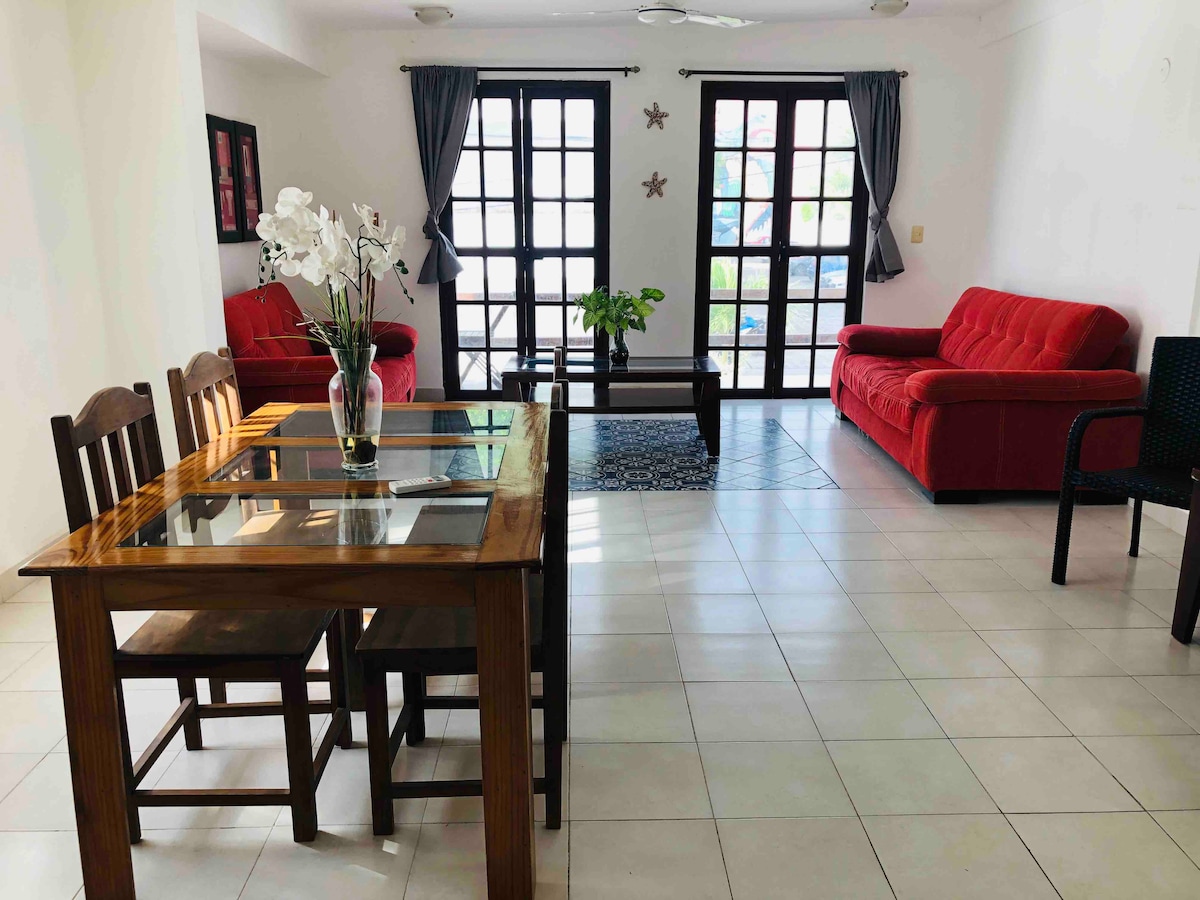 Cozumel peaceful 2nd floor studio, located 3 blocks from the Main Pier & Malecon (Ocean Principal Avenue), to enjoy & picture magical sunsets, go for a morning swim/run, SUP paddle, bicycle or snorkel Rainfall shower, Hot Water, Mexican Blend Coffee, AC, Luuna Bed, Security Safe. Fiber optic Wi-Fi +200 Mbps. Parking. Organic Mayan honey shampoo + soap + conditioner. Close to restaurants, shops, bars, local market, tacos and museum. Your Mexican Caribbean studio, feel like home. Welcome : )