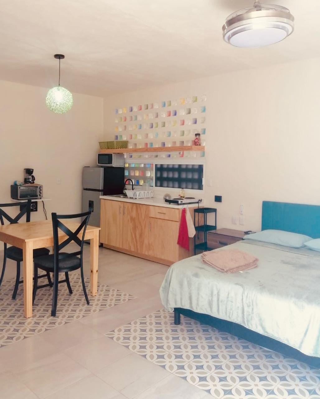 Full-equipped studio within a small, private complex of 8 studios, all of them designed to make you feel at home. Located in Playa del Carmen’s downtown, only 6 blocks away from the famous “5th Avenida” and 7 blocks from beautiful Caribbean beaches. Plus: a big supermarket one block away, banks, pharmacies, restaurants of local food all around. We have free parking subject to availability. Welcome!